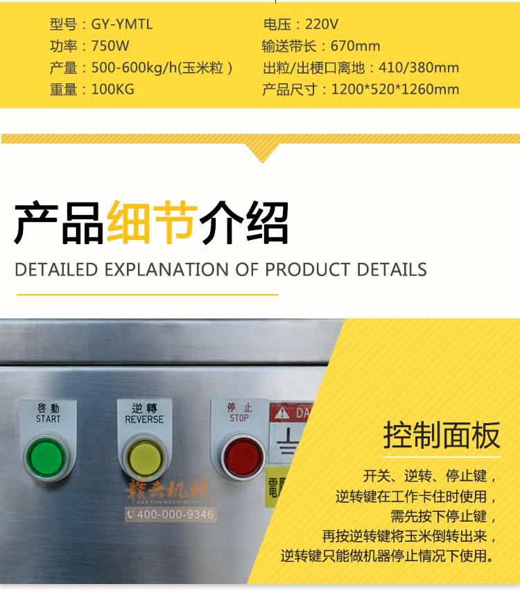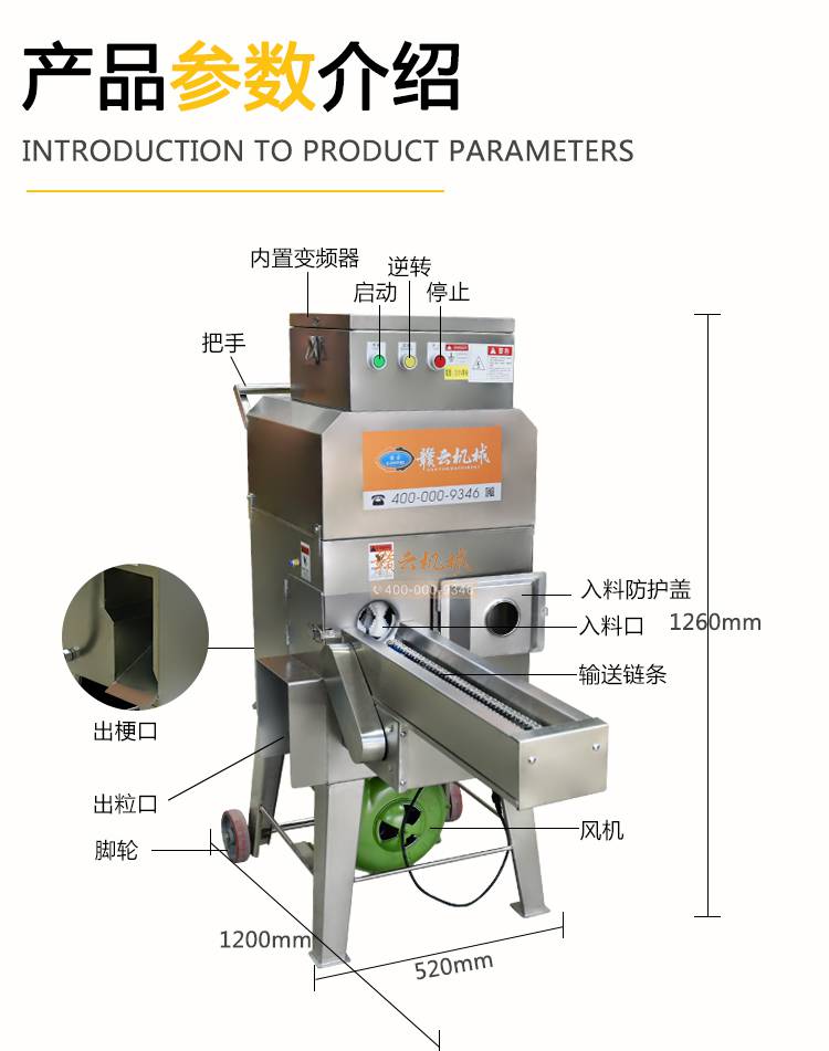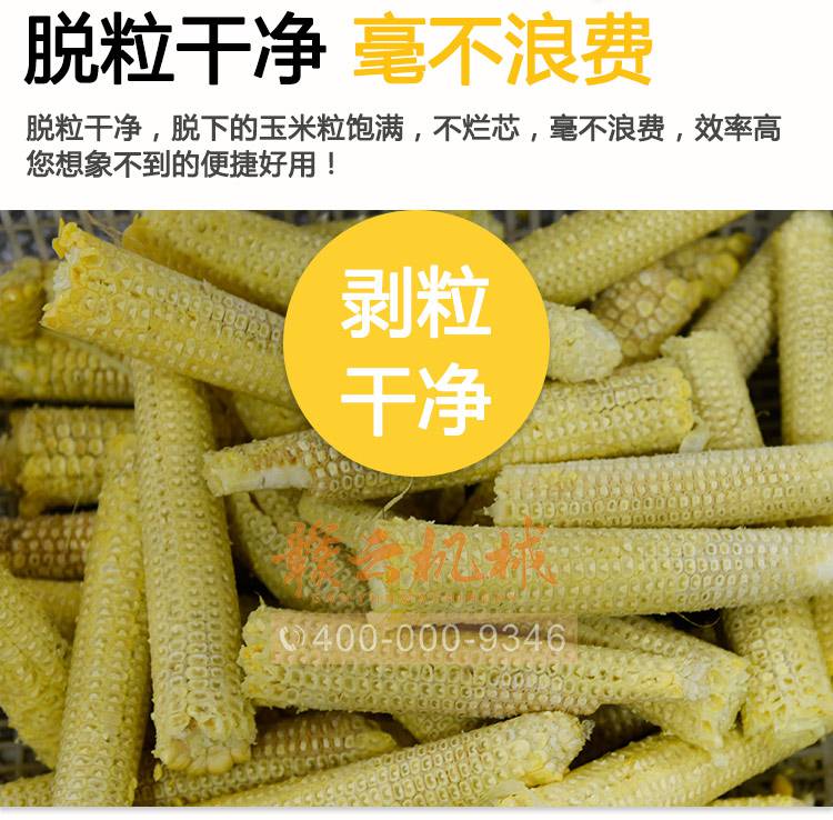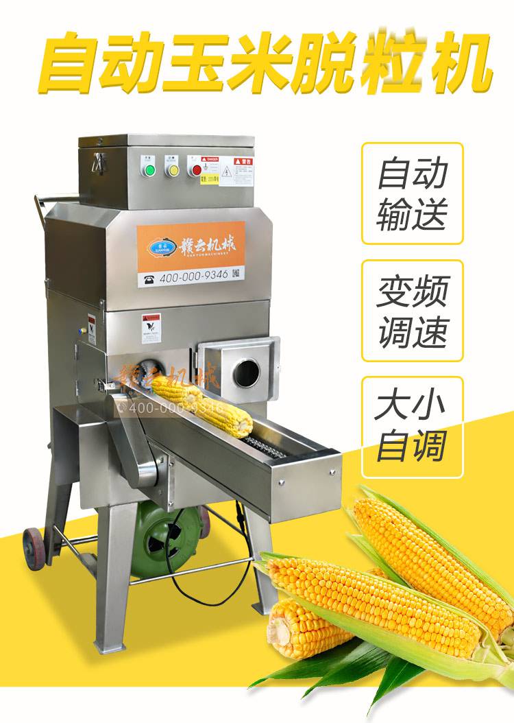 赣云自动玉米剥粒机,自动送料,变频调速,大小自动调节;容易安装,快速剥粒,剥粒干净不碎粒;不烂芯,颗粒饱满;整体采用不锈钢精心制造,外表美观大方,坚固耐用,清洗方便,不易腐蚀;大功率纯铜电机,动力强劲,运行稳定,使用寿命长。