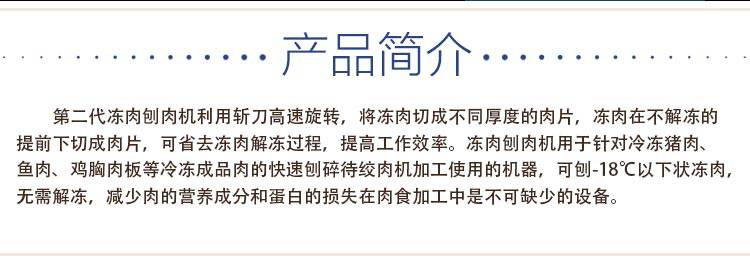 3:可用于各类整版冻肉刨肉,搭配提升机使用产能翻倍;适用于大型肉制品加工厂,冷冻食品加工厂,休闲食品加工厂,肉丸厂等食品加工企业;