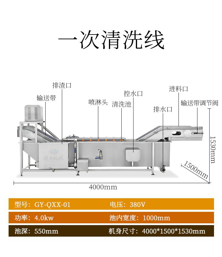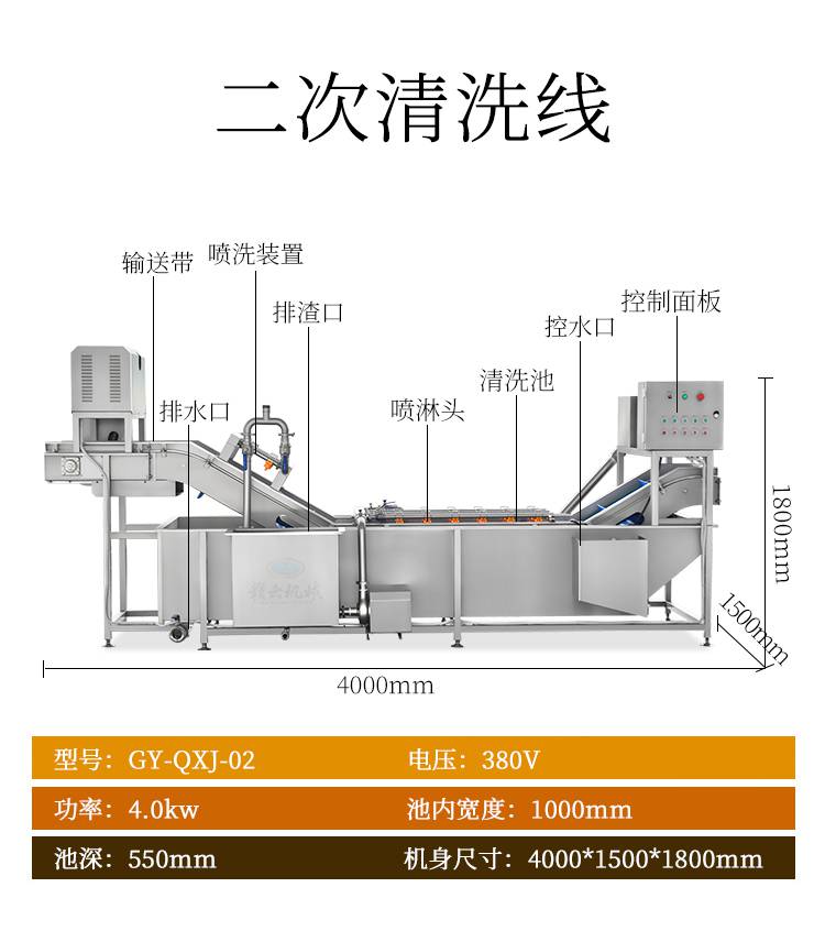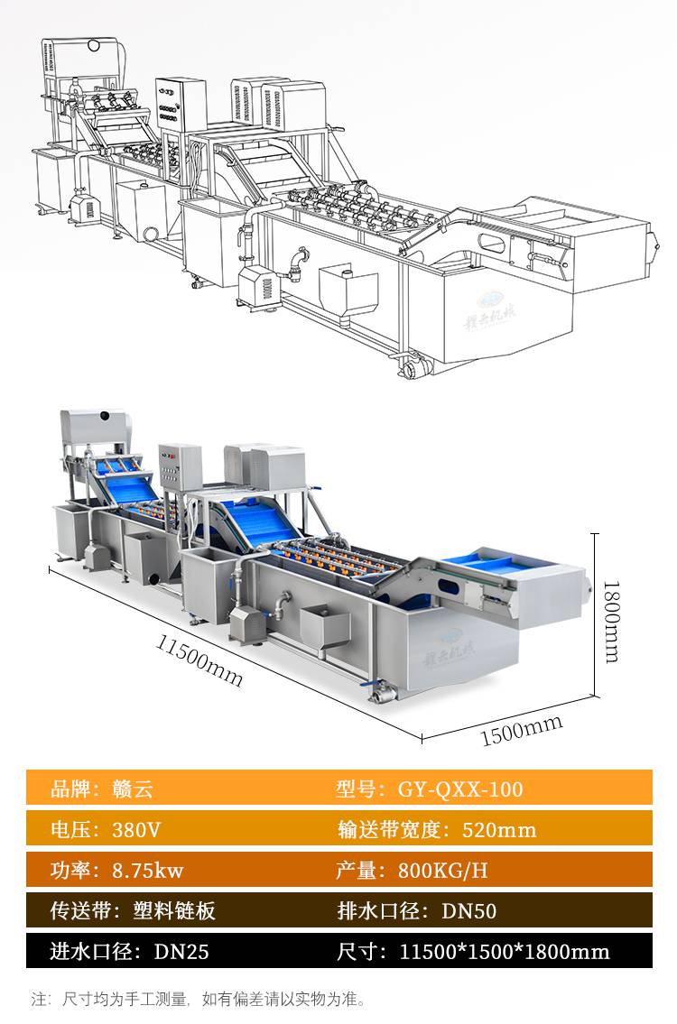 赣云牌中央厨房净菜加工设备果蔬无损清洗线机器参数: