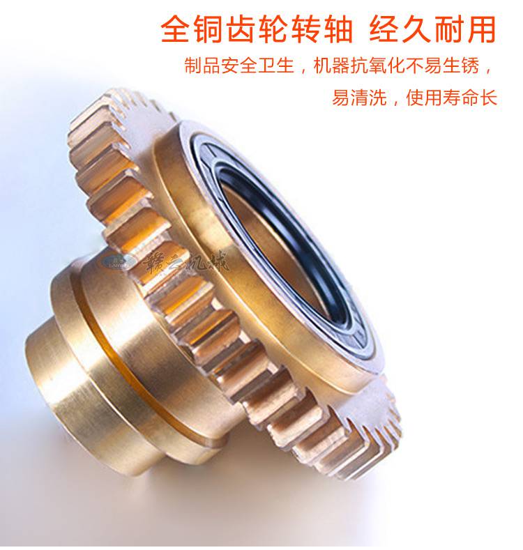 4:全铜齿轮转轴,经久耐用,制品安全卫生,机器抗氧化不易生锈;容易清洗,使用寿命长;