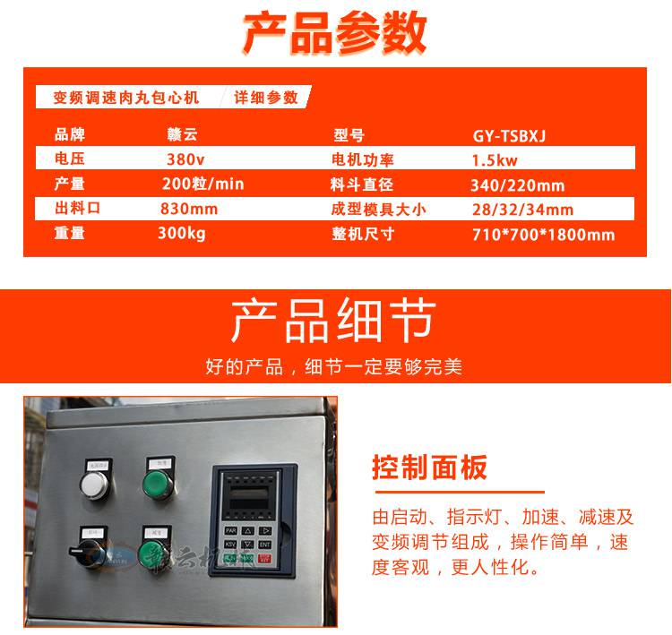 赣云牌全自动多功能包心肉丸成型机机器参数;
