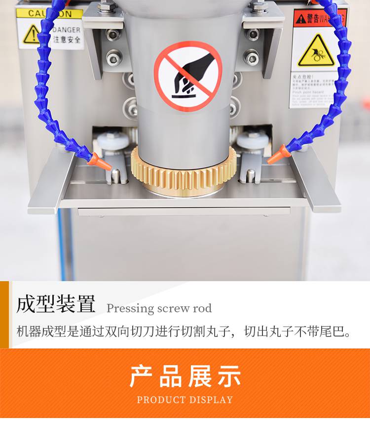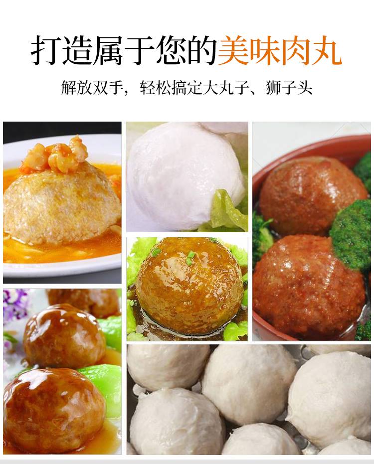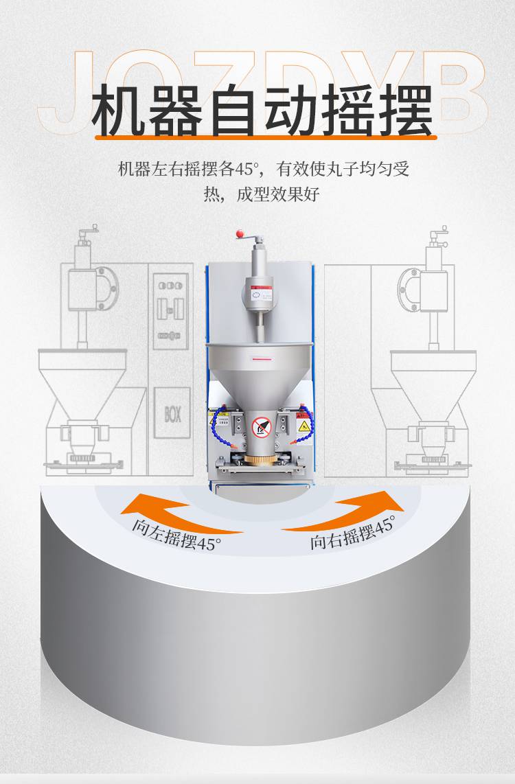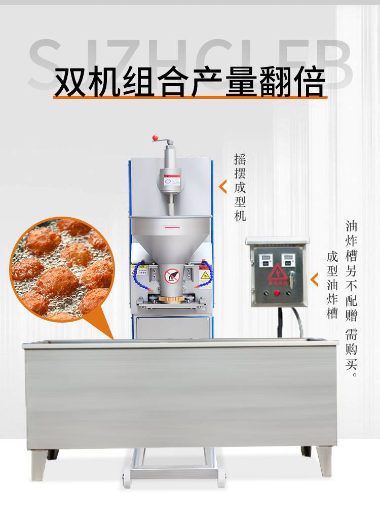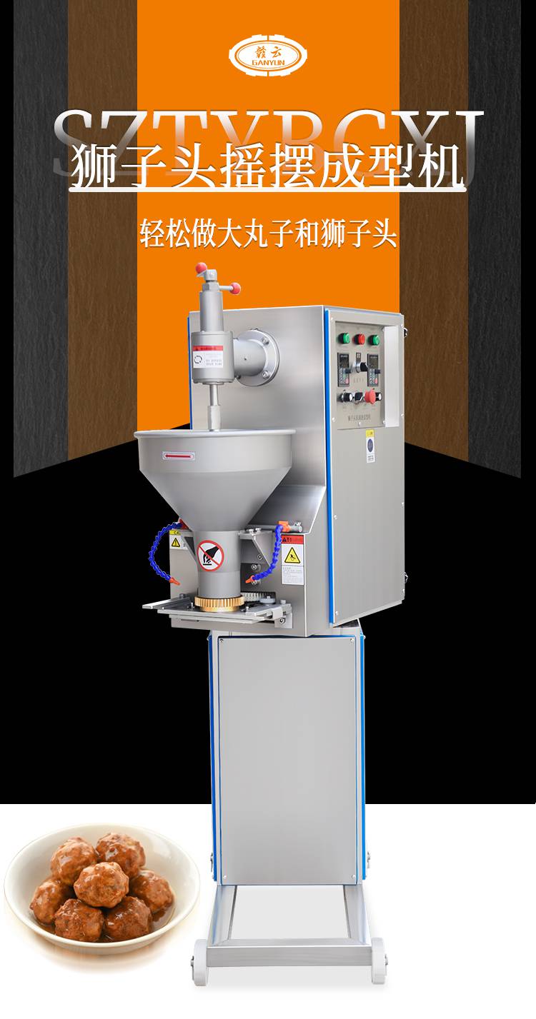 摇摆狮子头成型机主要是用于个头比较大的丸子成型,可成型直径在30-55mm之间的丸子成圆。双调速肉丸成型机和摇摆双调速肉丸成型机是肉丸成型机中最不挑肉浆的机器,可以适用于不同稀稠度、软硬度的肉浆。摇摆功能可以让肉丸成型时不堆积。