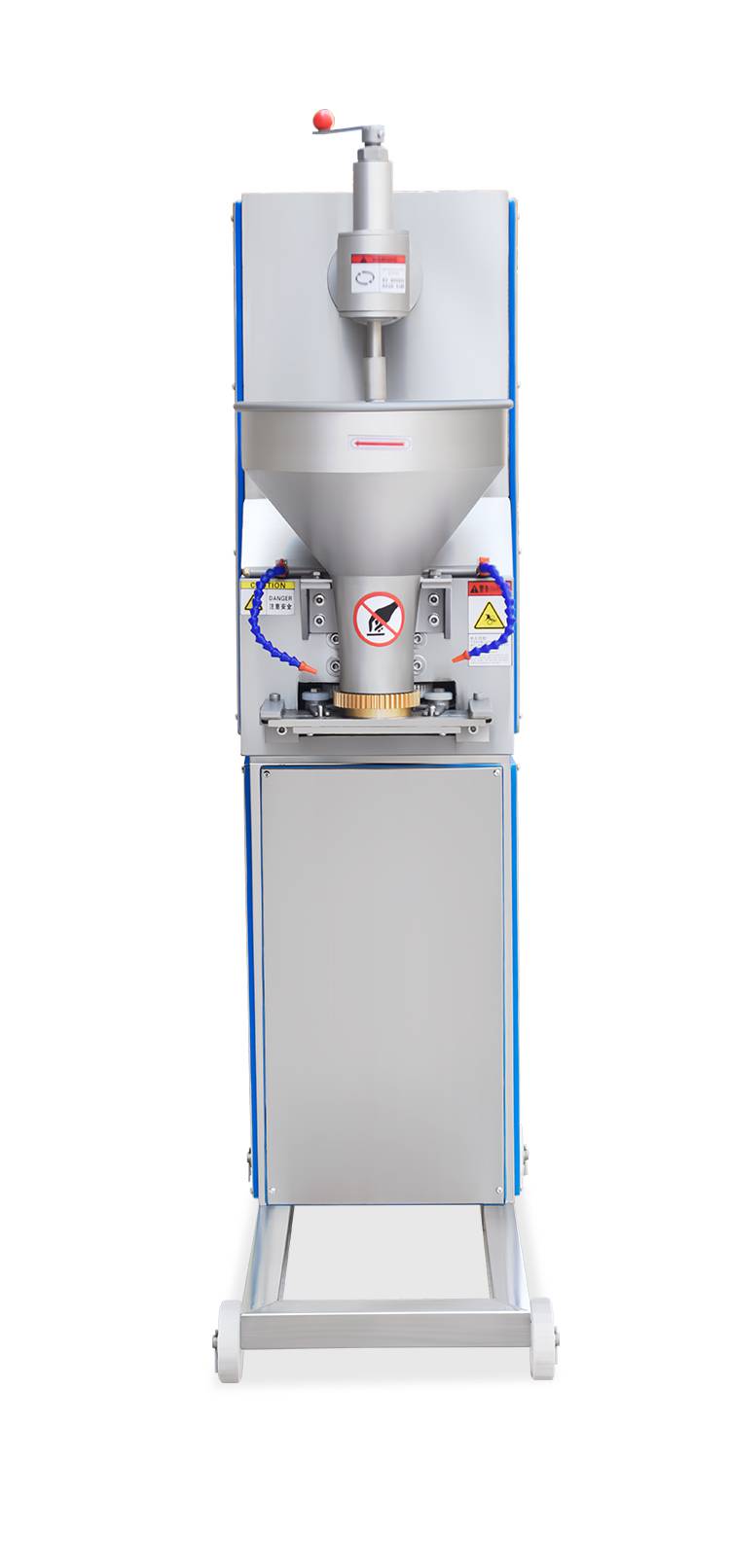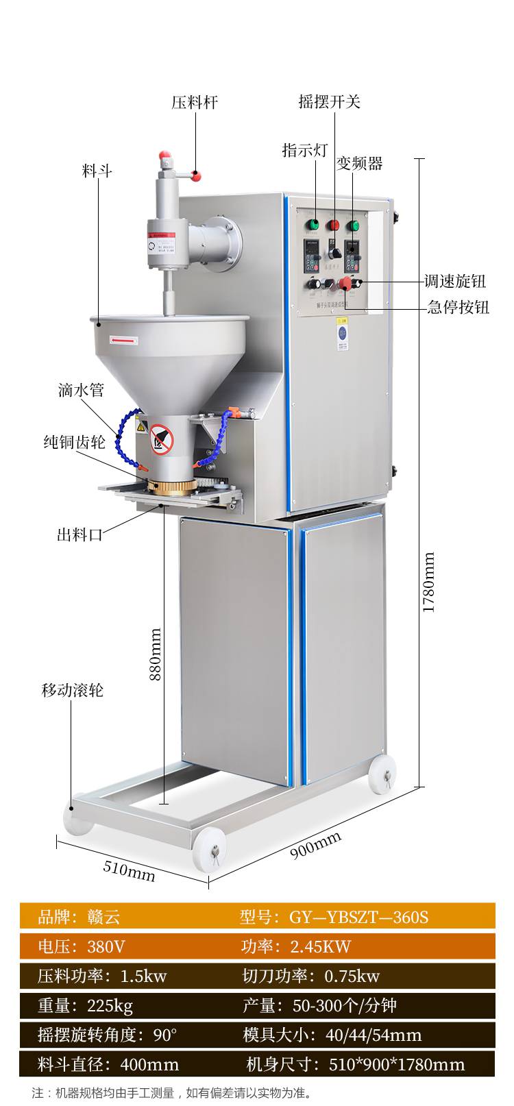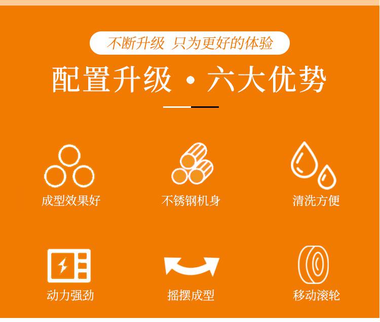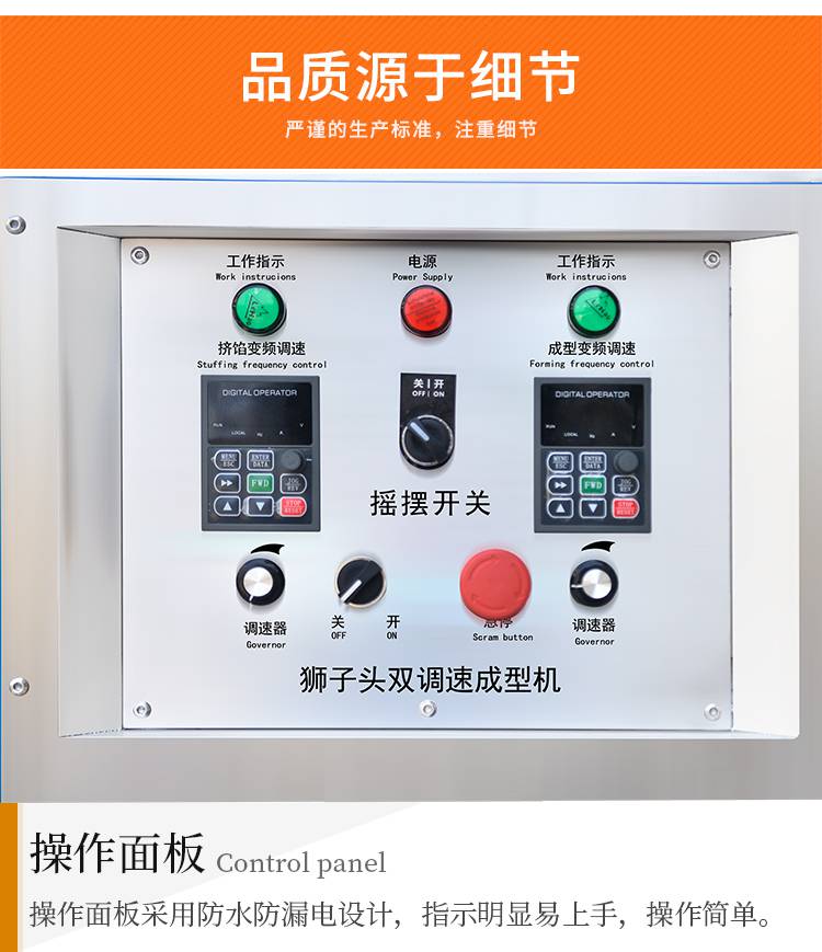 摇摆狮子头成型机主要是用于个头比较大的丸子成型,可成型直径在30-55mm之间的丸子成圆。双调速肉丸成型机和摇摆双调速肉丸成型机是肉丸成型机中最不挑肉浆的机器,可以适用于不同稀稠度、软硬度的肉浆。摇摆功能可以让肉丸成型时不堆积。