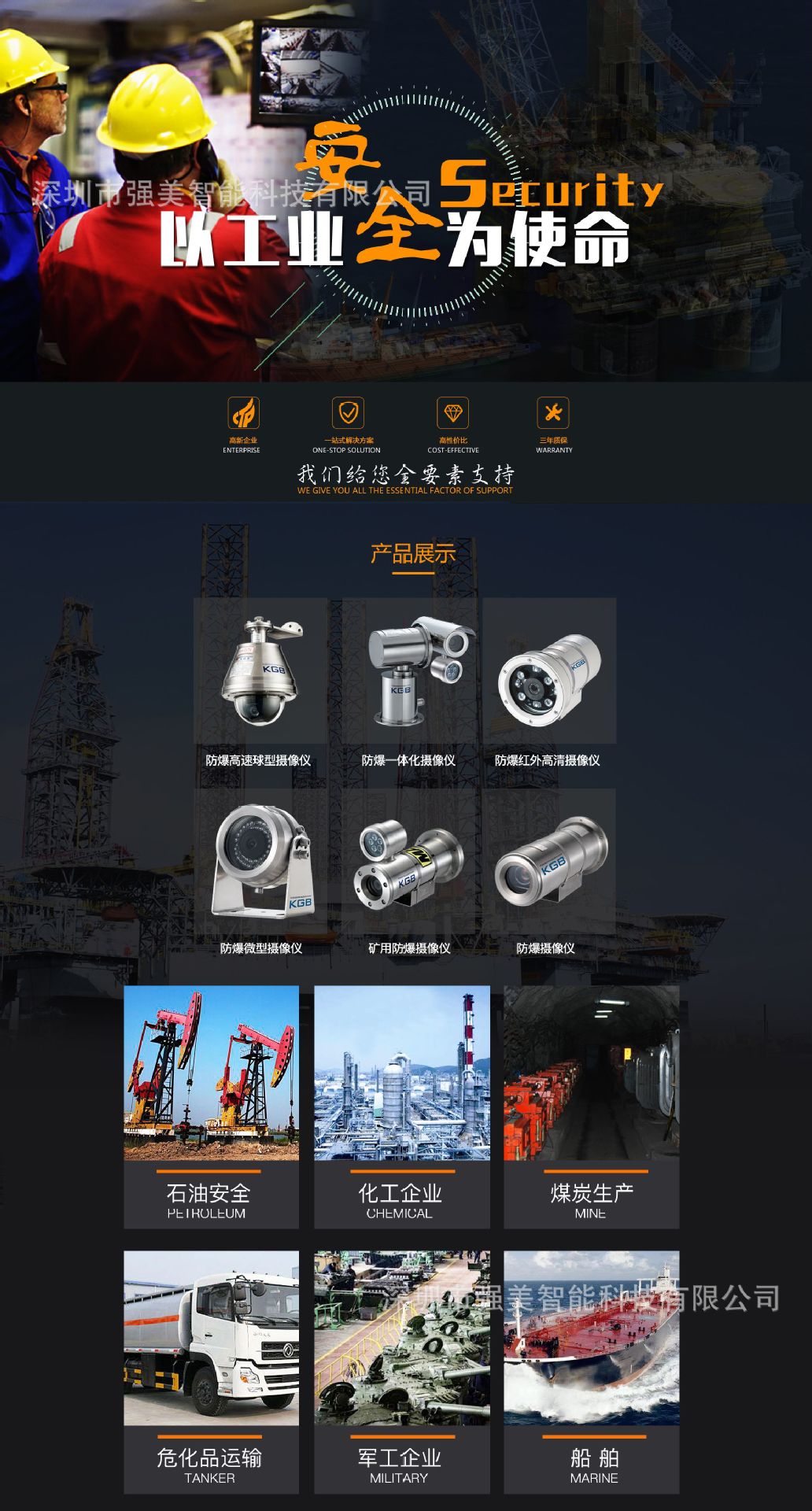 二、源头生产厂家。深圳强美是防爆摄像机、矿用防爆摄像机的源头生产厂家,产品可用于石化、煤矿、民爆等行业。深圳强美的产品质量过硬,技术支持到位,产品价格可控,售后服务无忧。尤其是防爆摄像机这类设备,产品选型一定要与生产厂家合作。