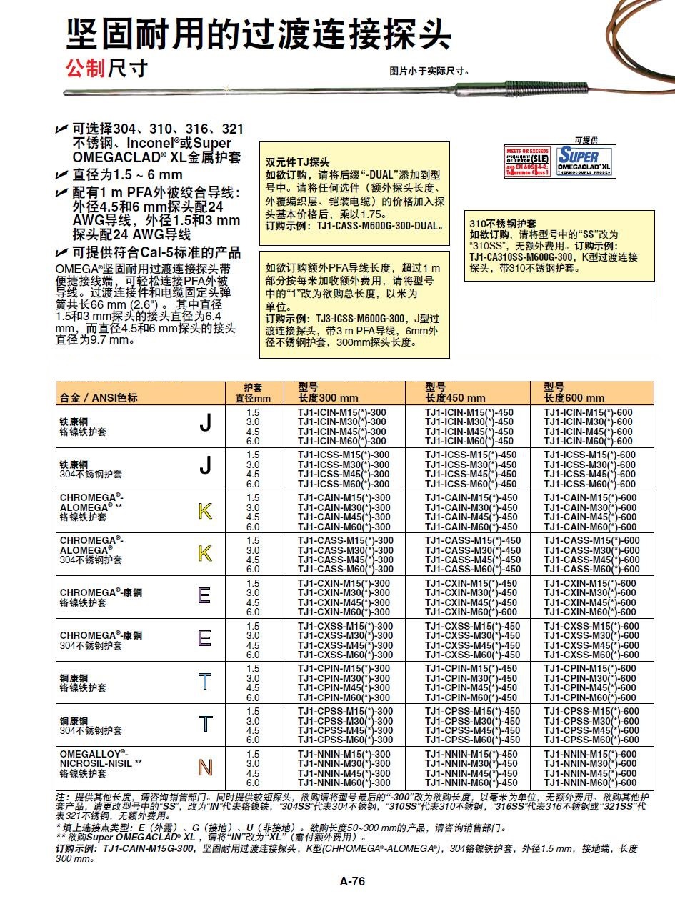 也可以提供 OMEGACLAD?XL 材质的探头,在高温环境中长期稳定工作