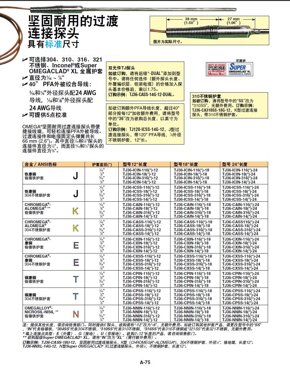 OMEGA?坚固耐用过渡连接探头带便 捷接线端,可轻松连接PFA外被导线。