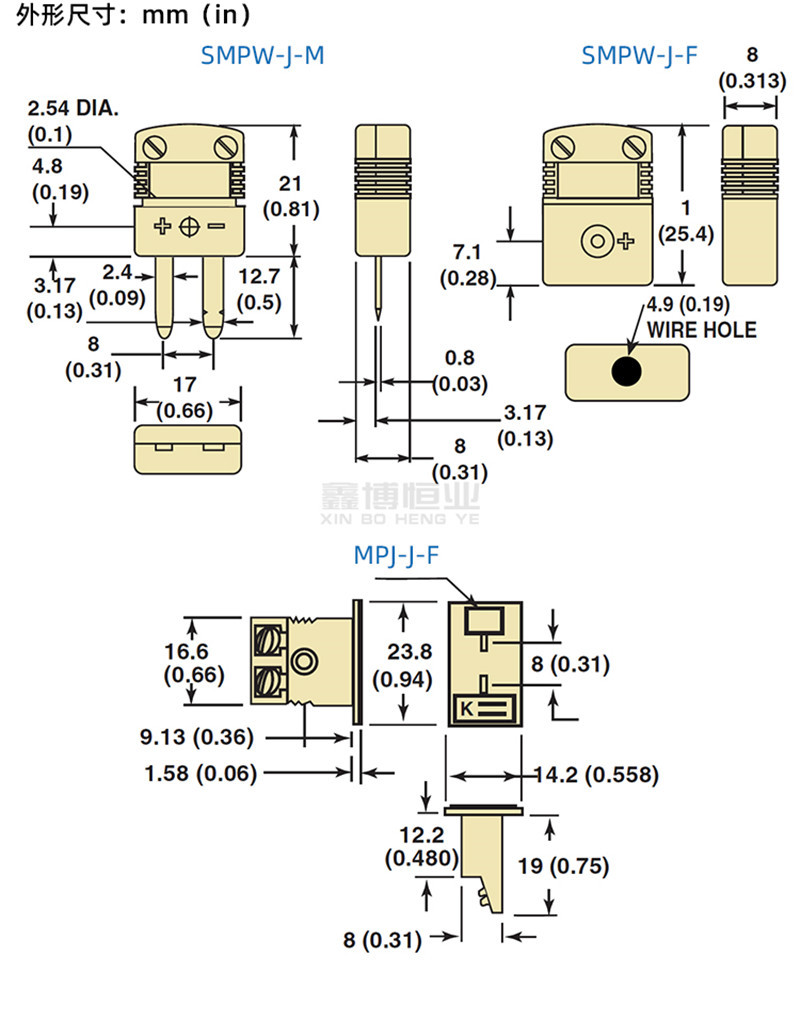 J型插头美国OMEGA原装带线轴接线端子SMPW-J-M-SMP-SC热电偶公头