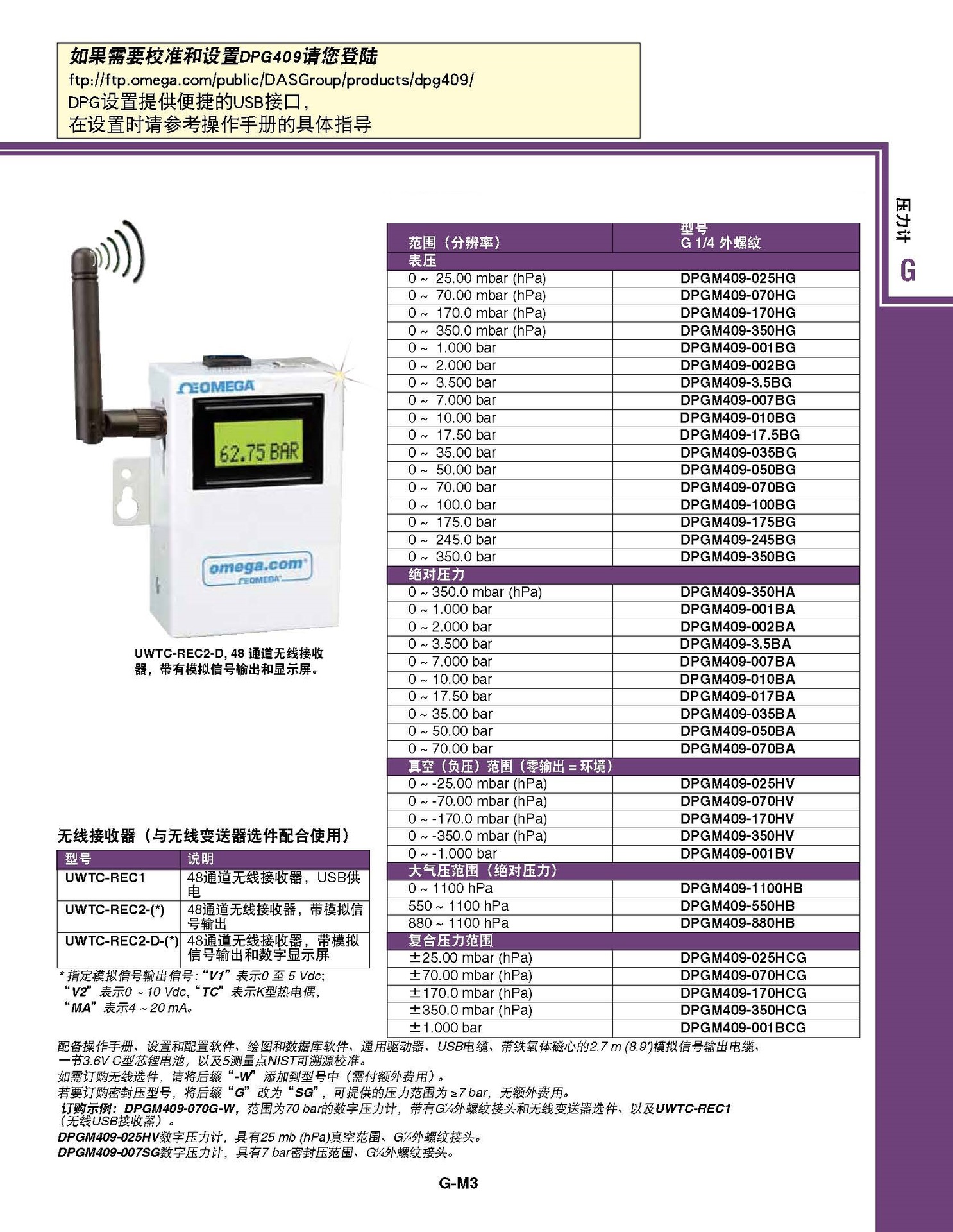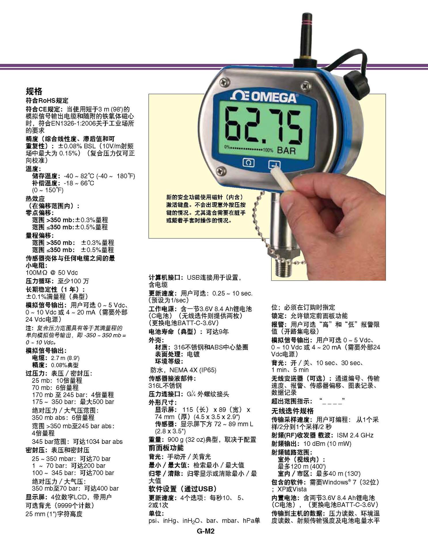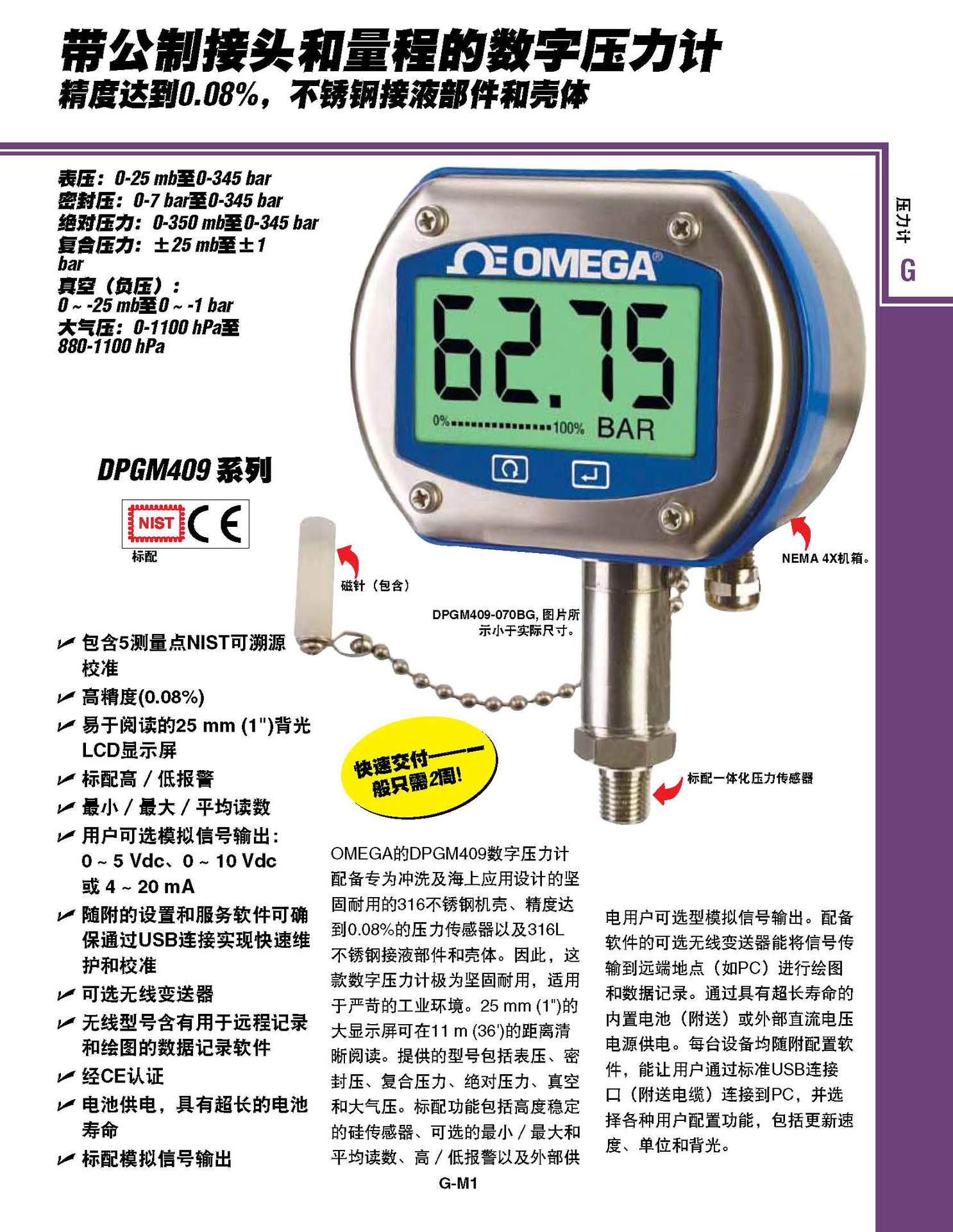 单位: psi、inHg、inH2O、bar、mbar、hPa单位;必须在订购时指定