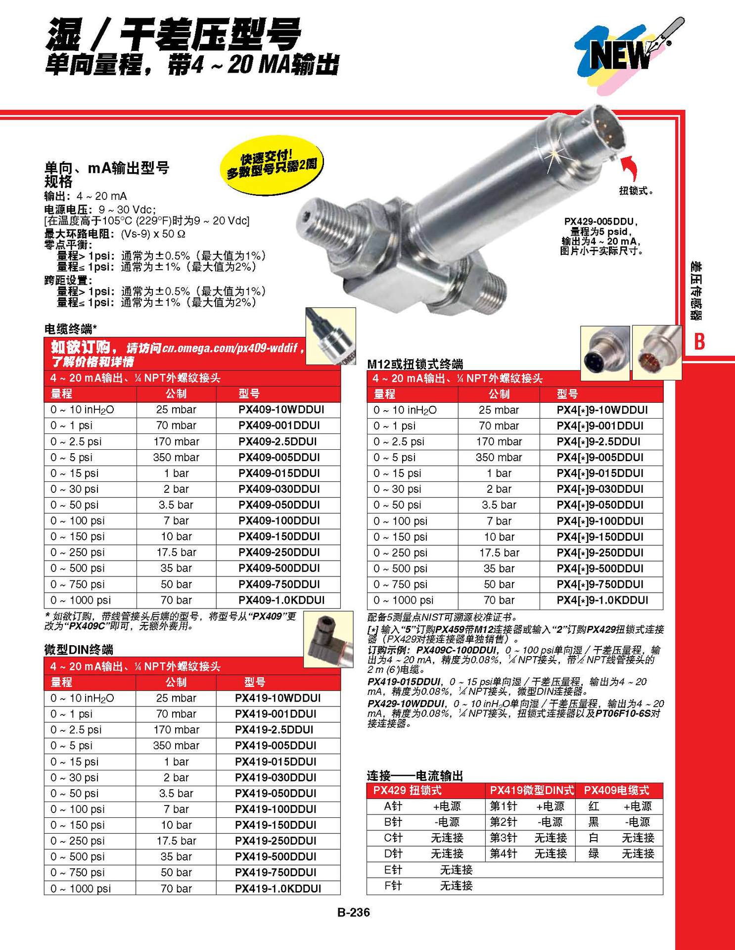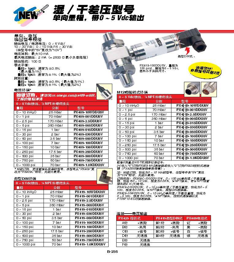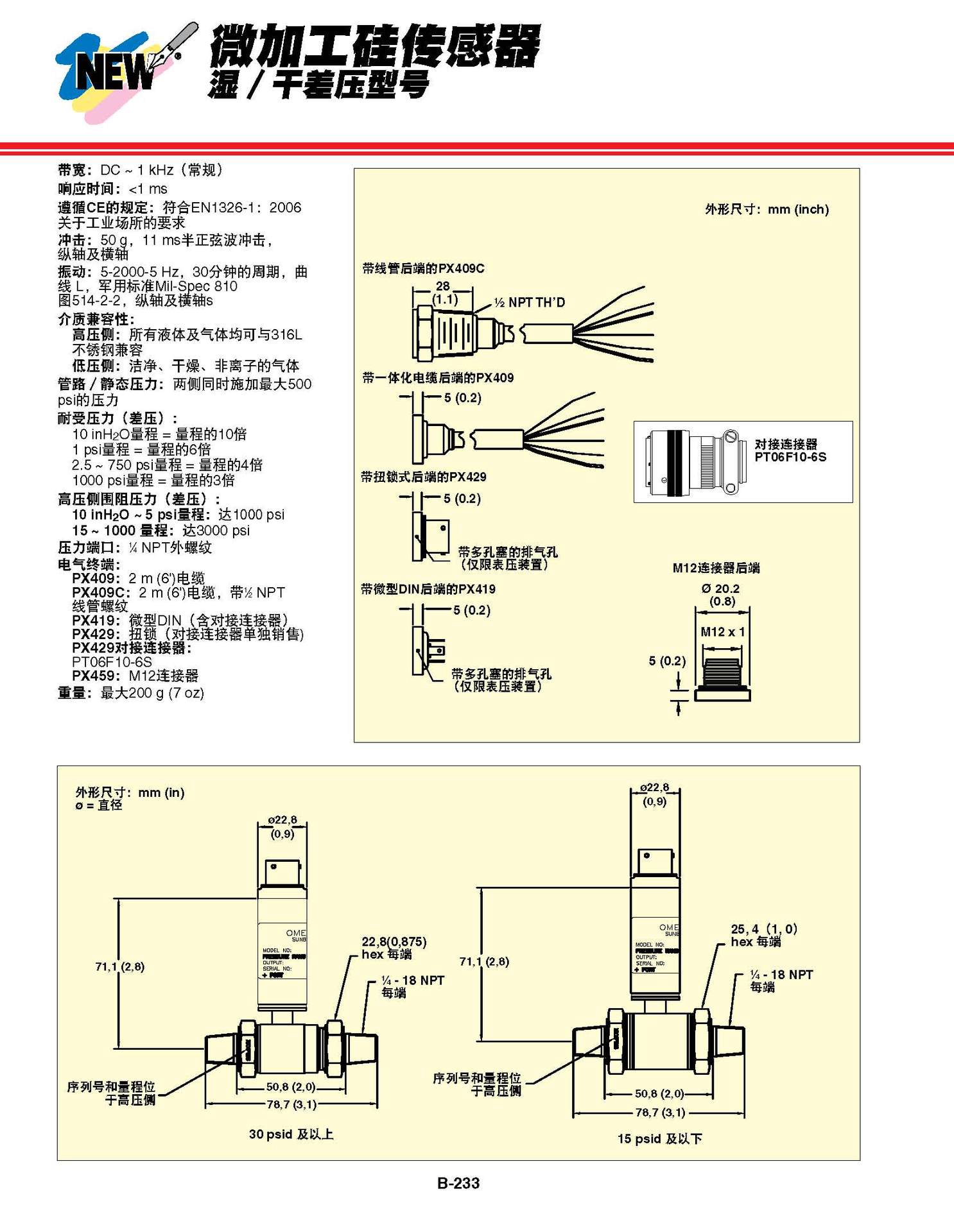 10 inH2O ~ 5 psi量程: 达1000 psi
