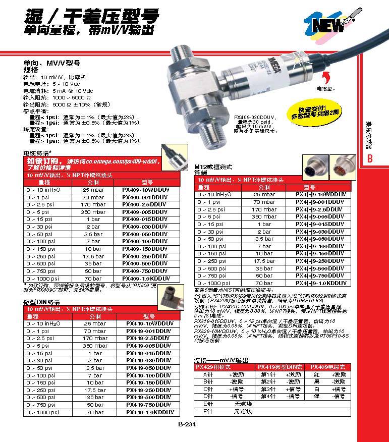 PX409C: 2 m (6')电缆,带? NPT线管螺纹