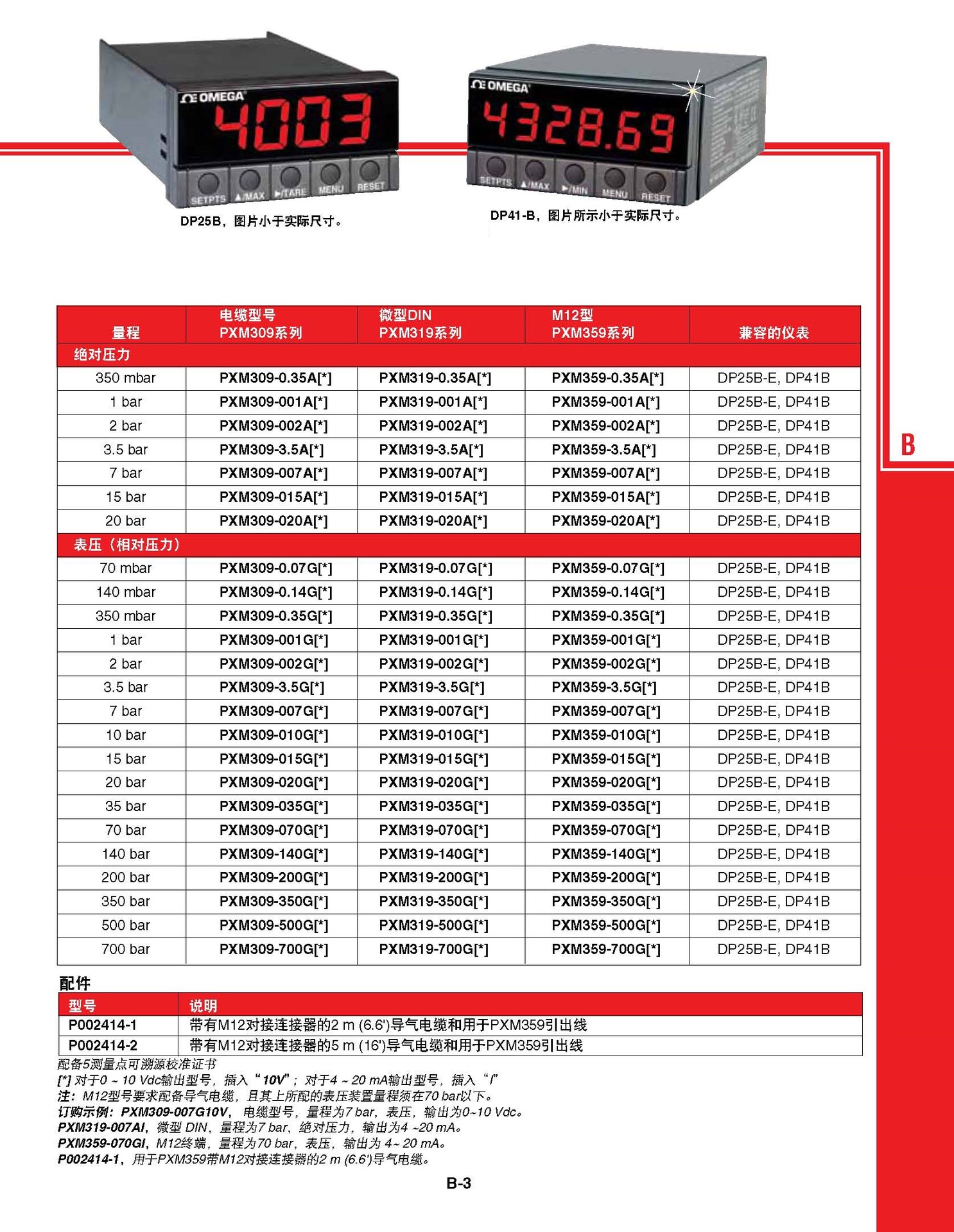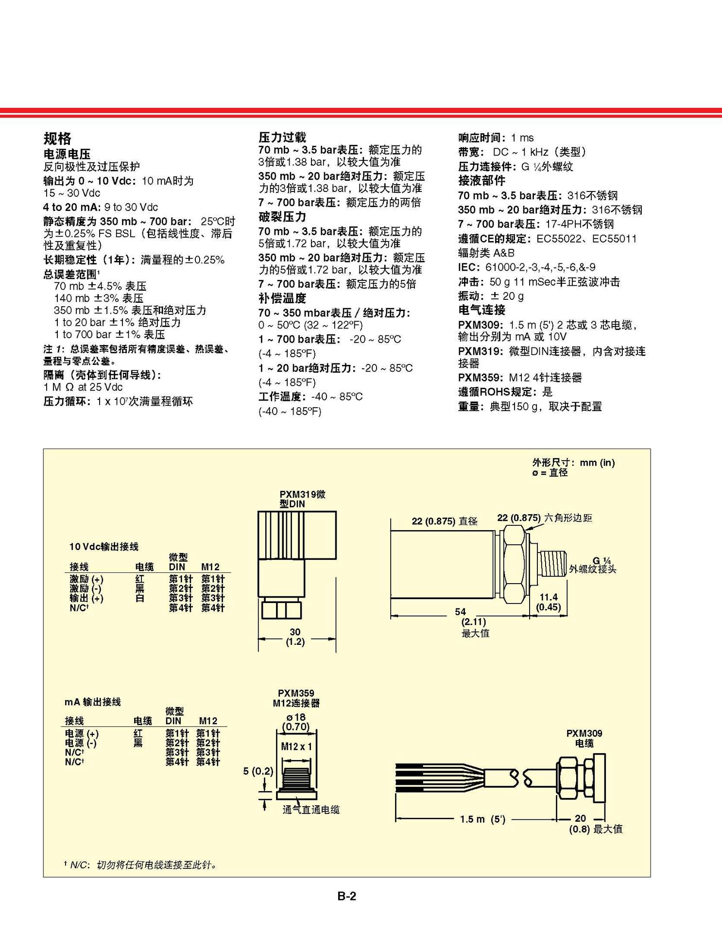 350 mb: ±1.5% 表压和压力