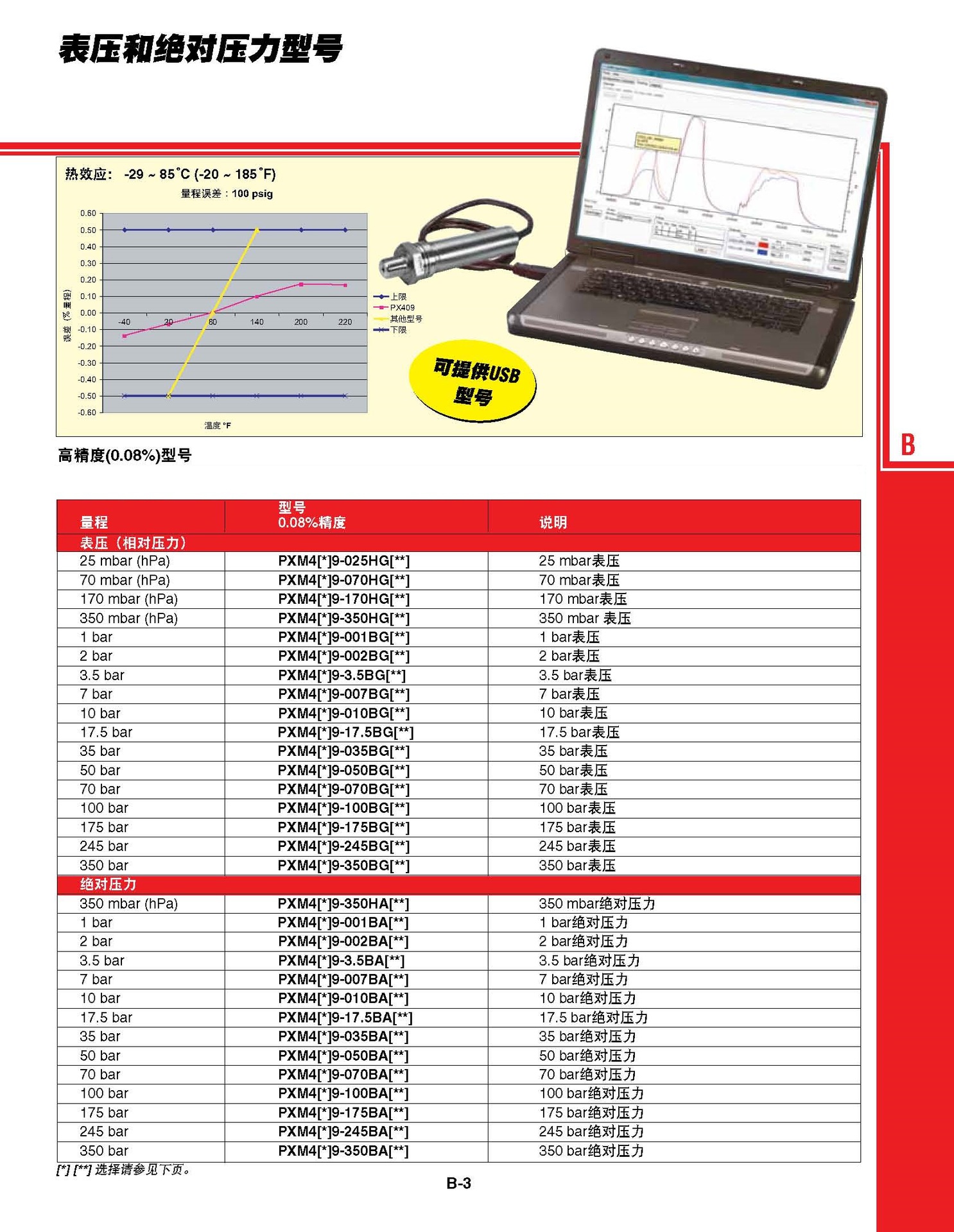 1100HB for 0到1100 mbar(仅适用于 气压型号)