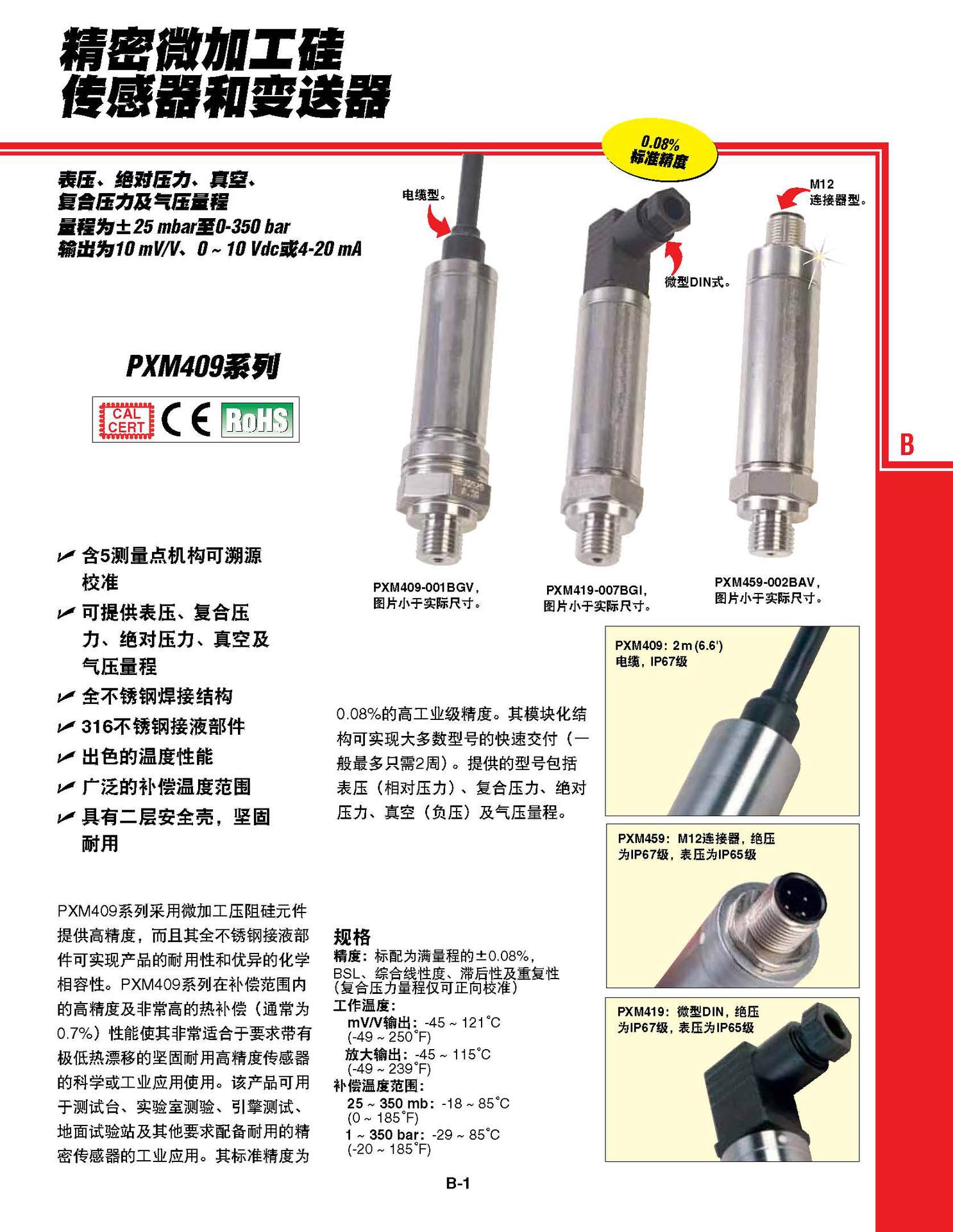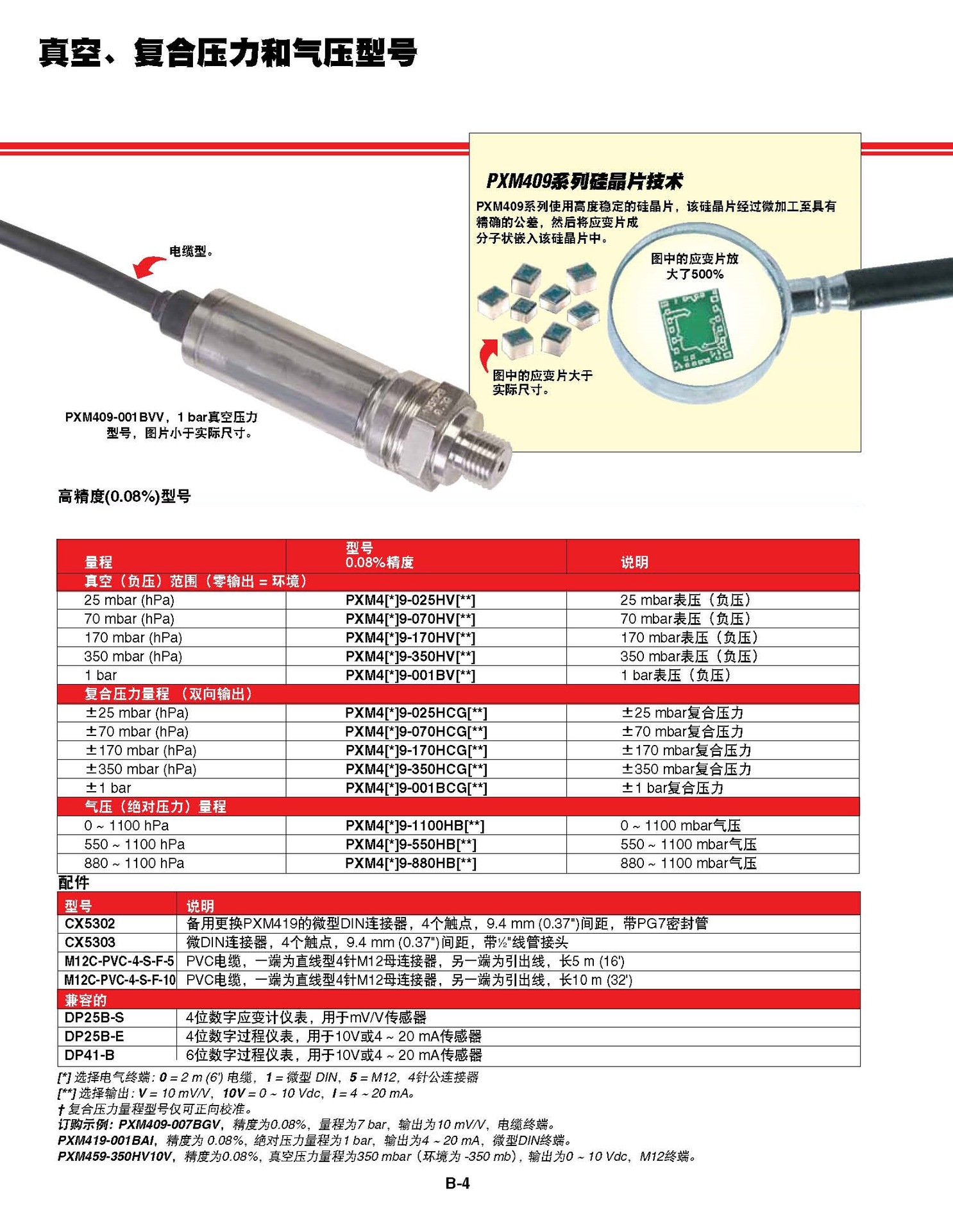 PXM409,PXM419,PXM459精密微加工硅传感器和变送器