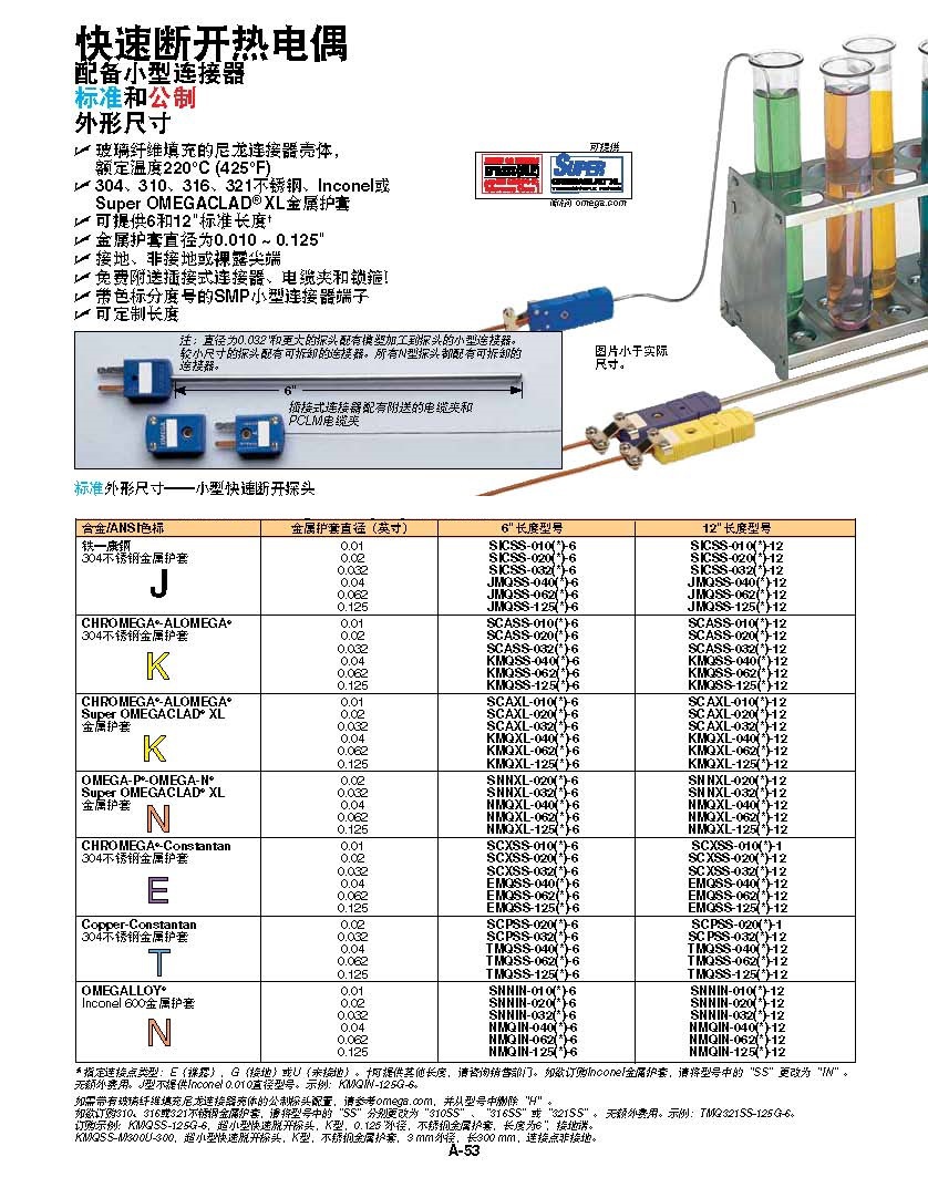 金属护套直径为0.010 ~ 0.125"
