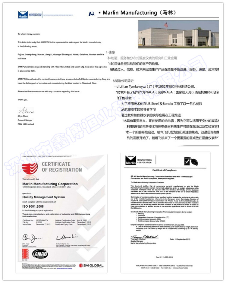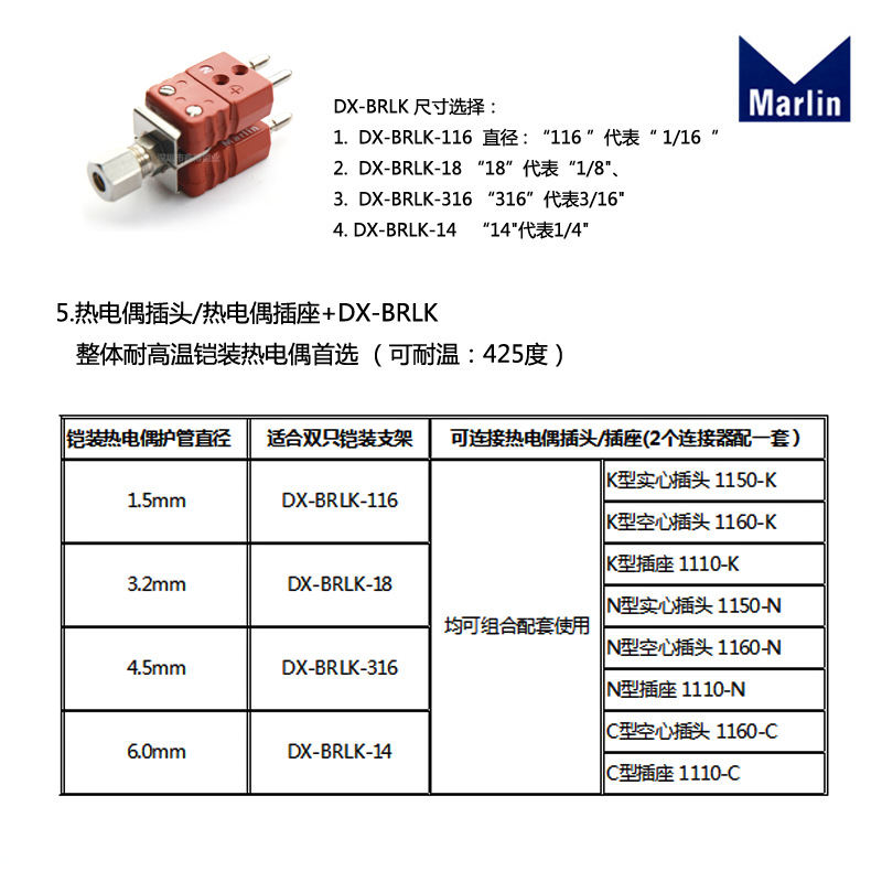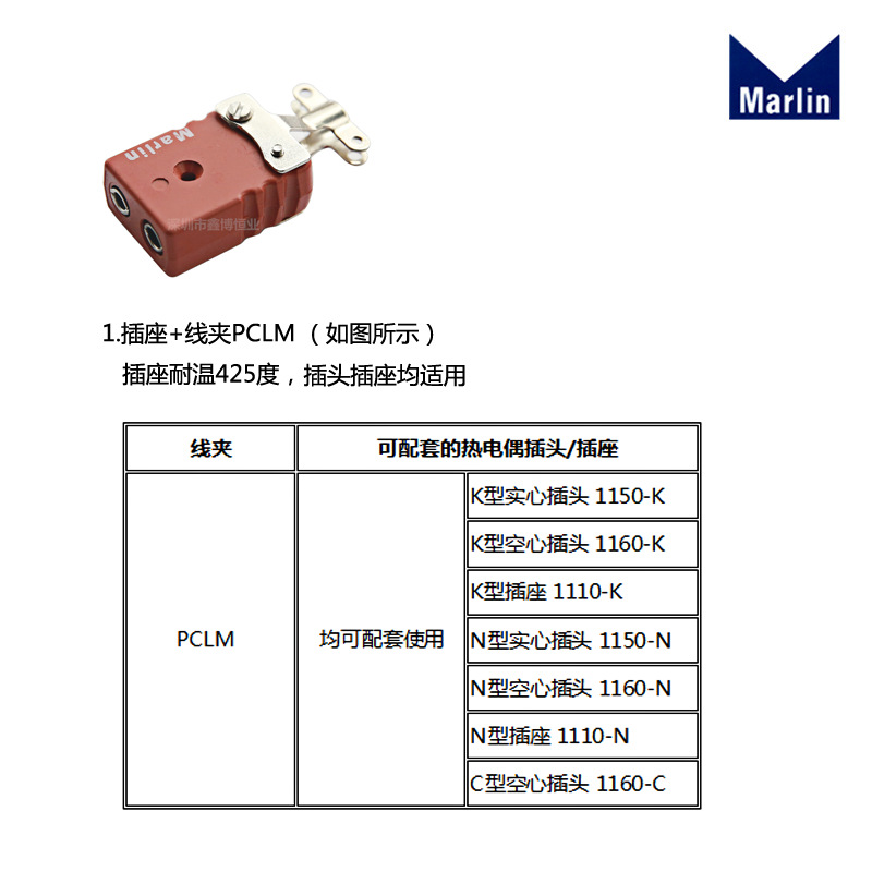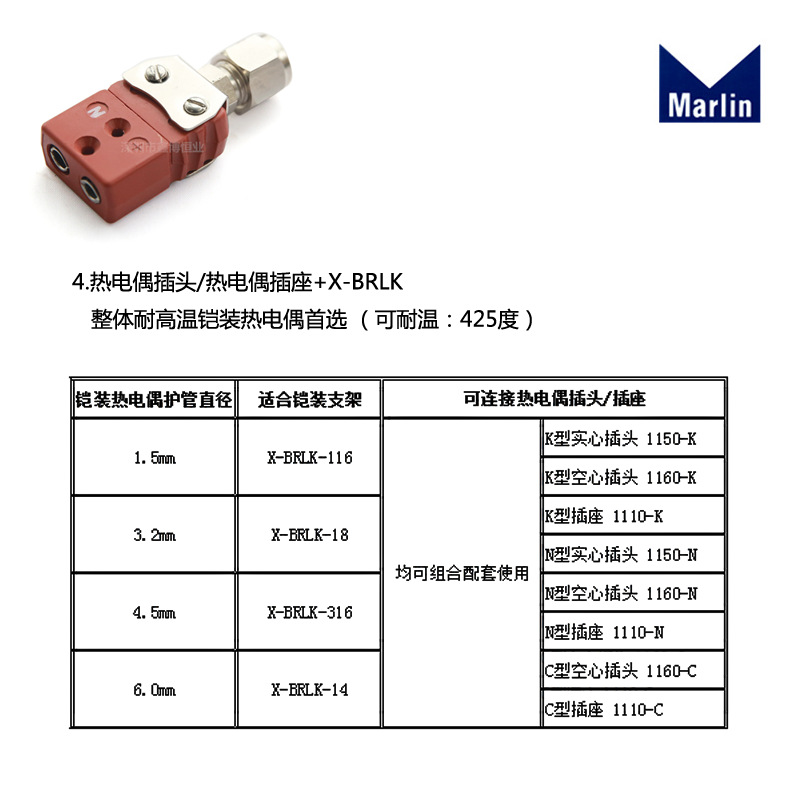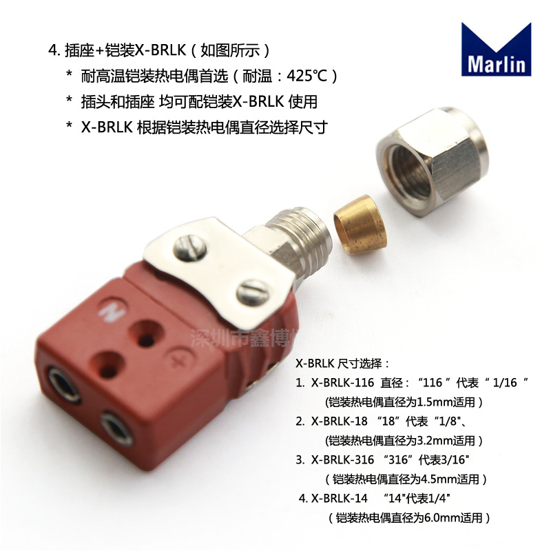 美国马林Marlin双只K/N/C型耐高温铠装热电偶插头插座/铠装连接器