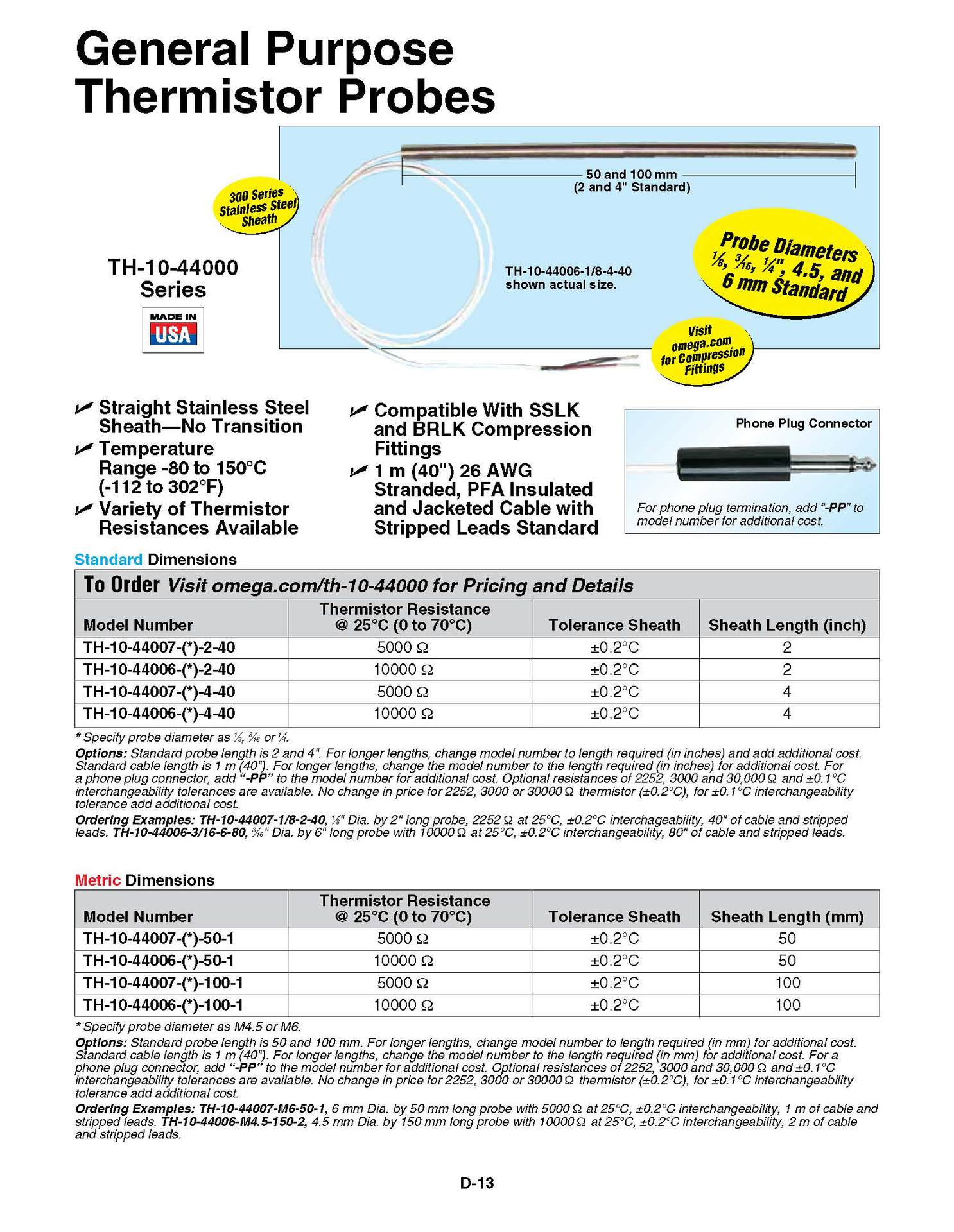 TH-10-44000系列通用型热敏电阻探头