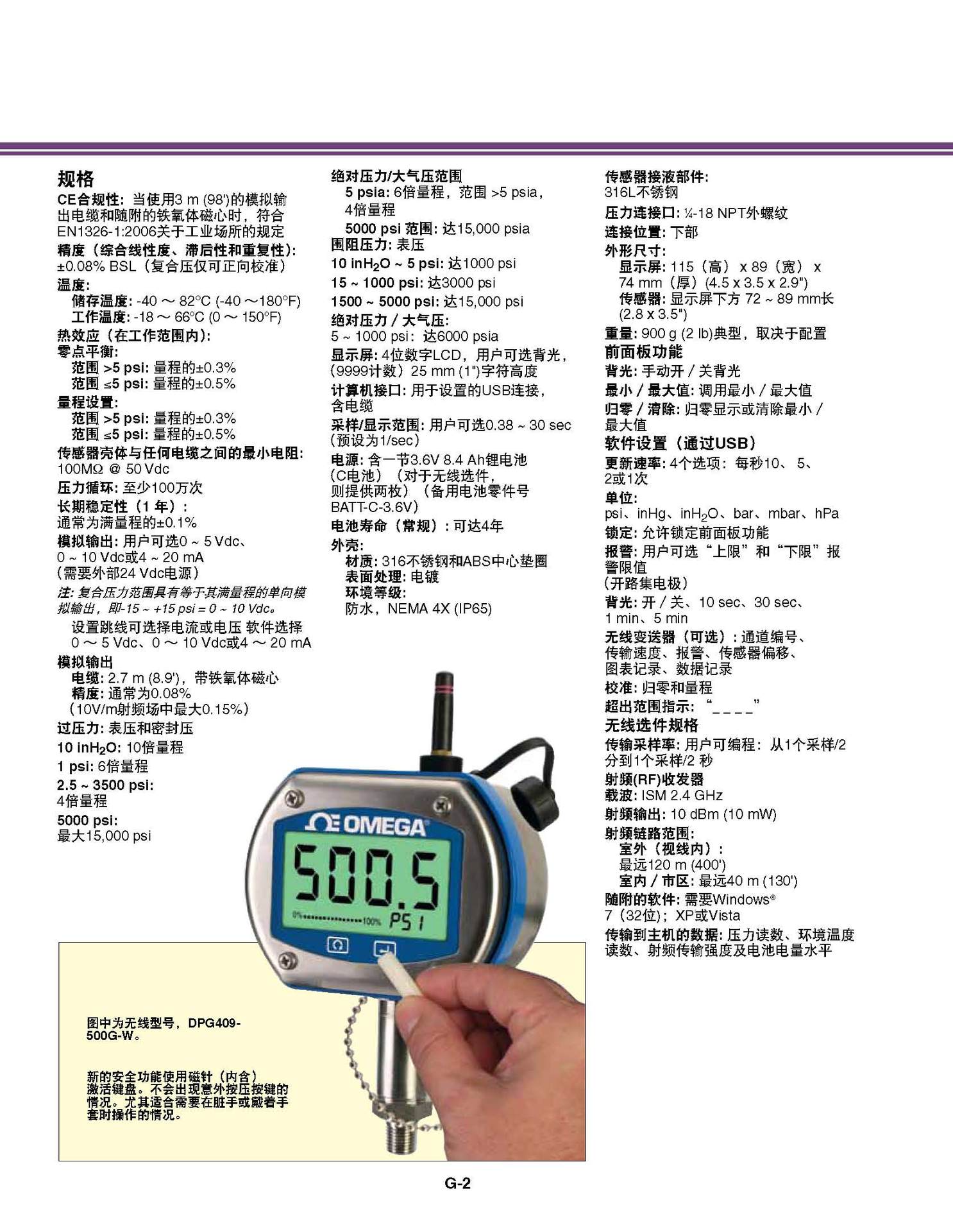 无线选件规格传输采样率: 用户可编程:从1个采样/2分到1个采样/2 秒