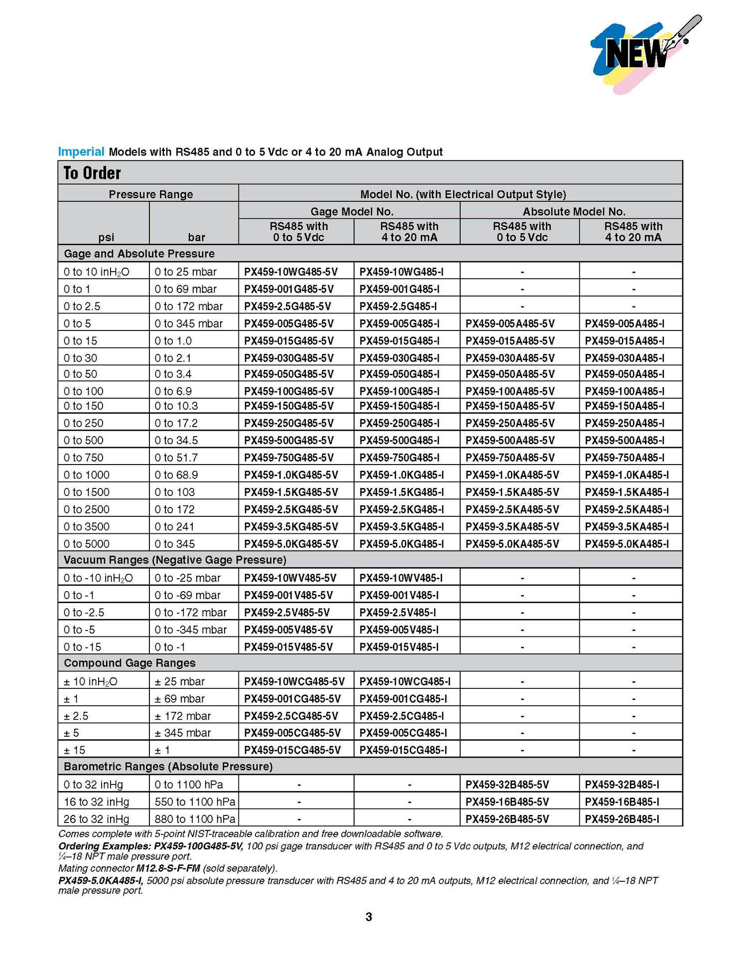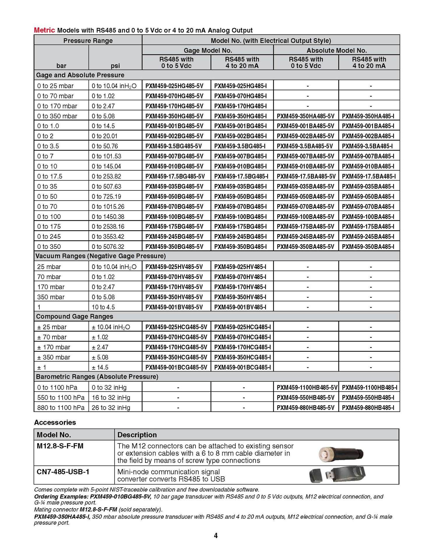 型号 压力传感器PXM459-050BG_070BG_100BG_175BG_245BG_350BG485-5V_I