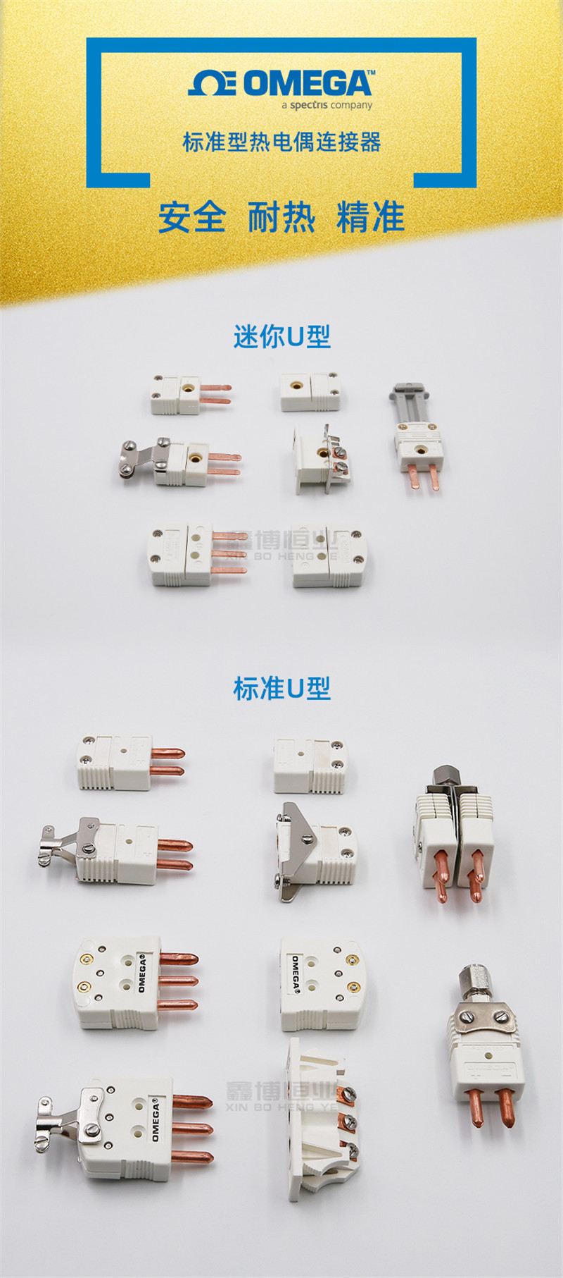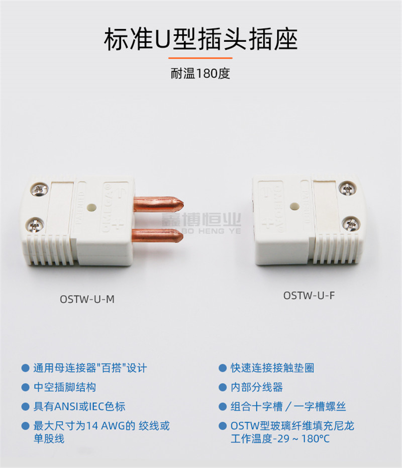 原装美国OMEGA带线夹U型热电偶接插件热电阻接线端子OSTW-U-M插头