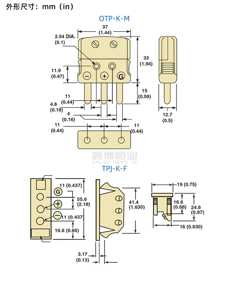 OTP型三插脚带色标的快速脱开插头和插孔可在热电偶和延长线之间提供可靠的连接。带色标的壳体由玻璃纤维强化型尼龙模塑而成。管状插脚和筒状插孔具有低密度,可减少温度梯级。负极插脚和插孔比正极插脚和插孔更大,可确保连接时的正确。这是所有OMEGA? 连接器上的标配特征。建议用于大多数要求三线电路的应用,包括屏蔽热电偶、热敏电阻和RTD。连接器可承受220°C (425°F)的环境温度。抗冲结构。