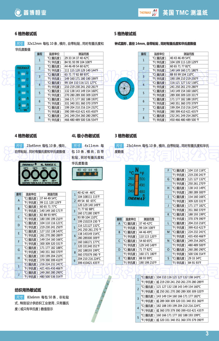 英国TMC温度美 英国THERMAX感温贴片 10格B型 77-127摄氏度