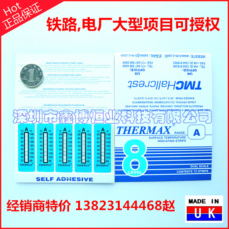 试温腊片 八格测温纸 热敏贴纸 温度美测温纸 8格A 英国THERMAX