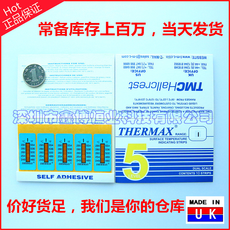 英国TMC温度美 英国THERMAX温敏纸 5格I 高温 249-290摄氏度