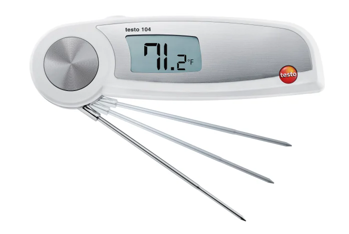 Testo 104防水食品探针温度计具有广泛的特征,包括较强的可折叠外形,涂有橡胶涂层的防滑表面,颜色编码标记,以防止交叉污染,以及长而的温度探测器,使其理想地适合在食品行业。