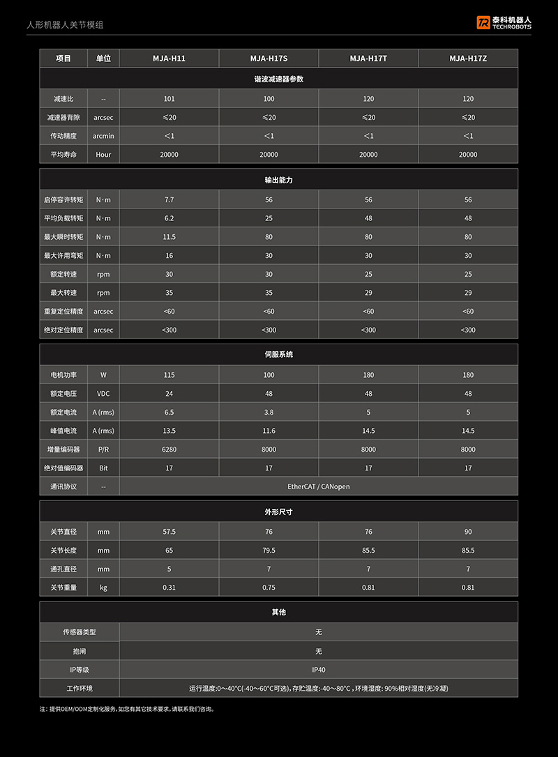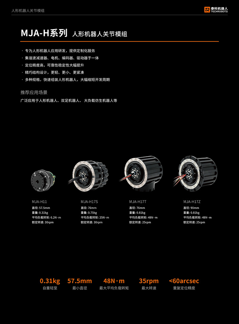 ? 专为轻量型人形机器人手臂应用研发,提供定制化服务
