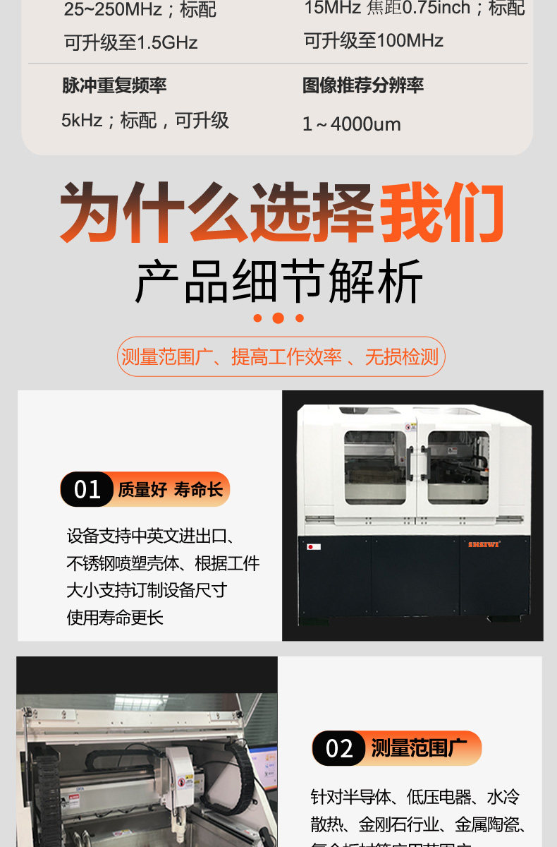 SHSIWI/上海思为仪器可为客户提供超声无损检测仪器定制、检测标准定制、检测方案及夹具定制服务。现已形成110金刚石一体机、100标准机型、200大构件机型、300、600高速机型、400桌面机及500、510、520小型机,产品已通过ISO9001认证;
