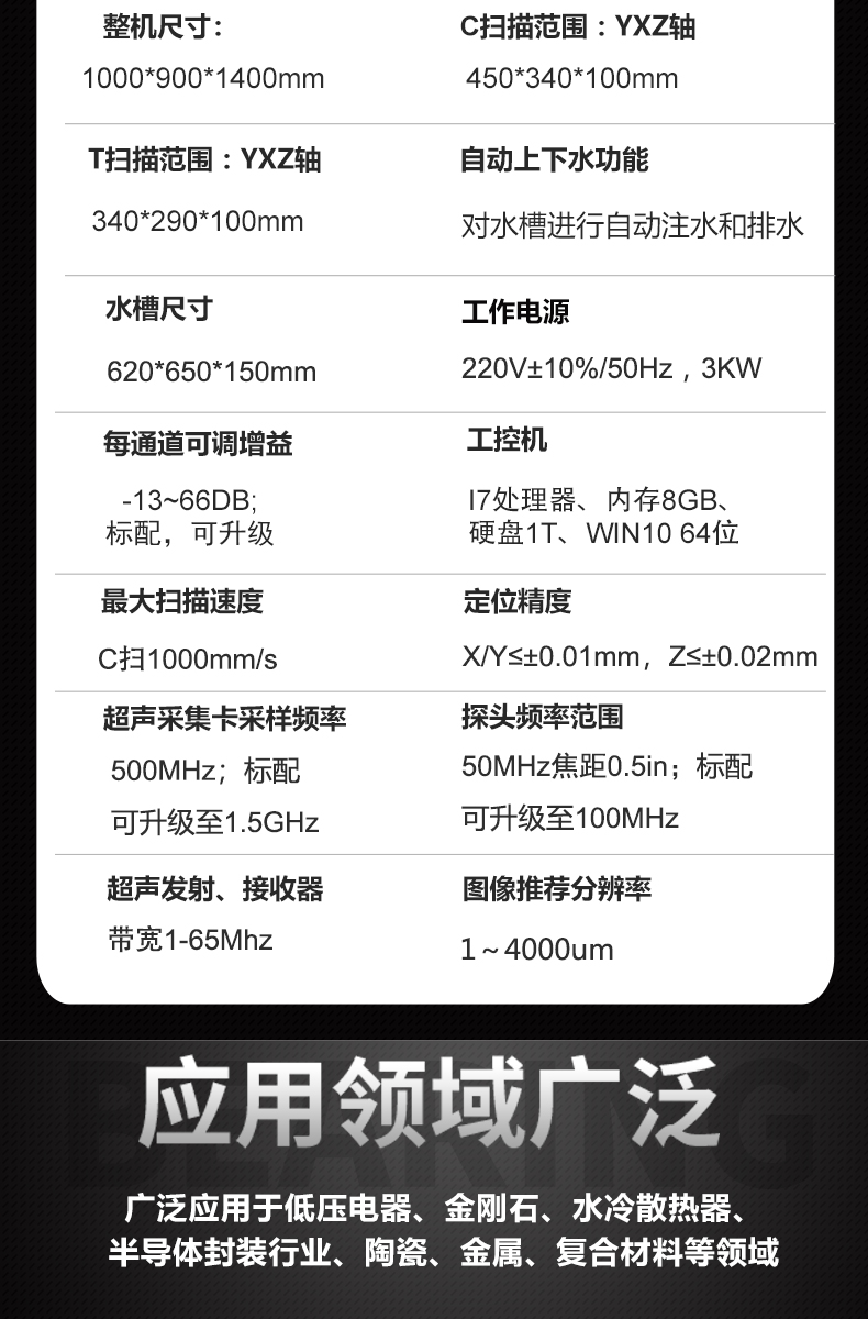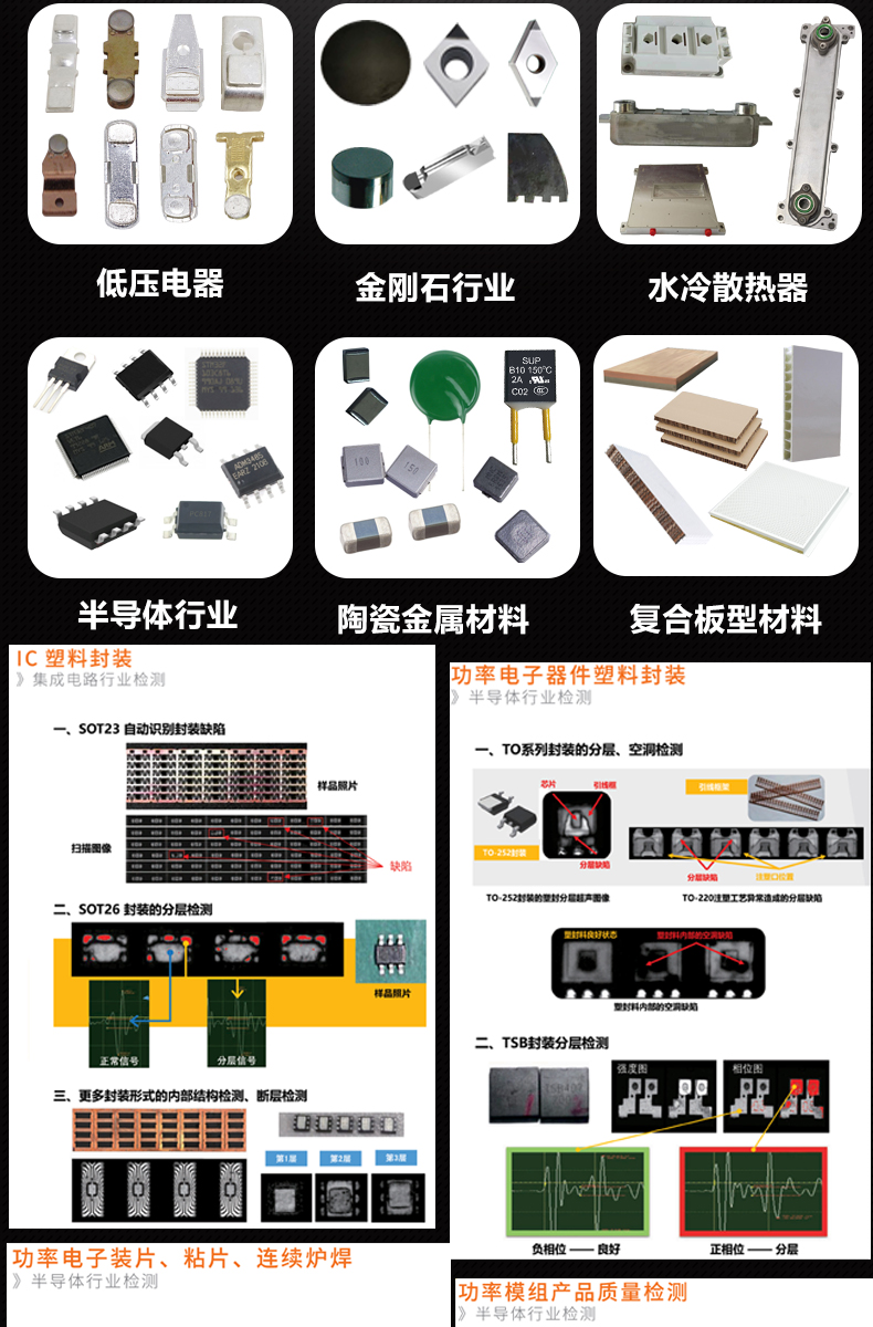 水浸超声扫描显微镜、无损检测系统一体机、水浸超声扫描显微镜、电力电子C超扫描显微镜、低压电器银点钎着率、半导体封装空洞率检测设备、聚晶金刚石复合片缺陷焊接率扫描显微镜、水冷板内部裂痕无损检测机、水冷散热器缺陷C-SAM检测设备、奥林巴斯超声探头,半导体塑封、粘片与焊接缺陷检测用超声扫描显微镜、超声无损检测设备,超声波扫描探伤仪、焊缝无损检测设备、IGBT模块焊接空洞缺陷CT无损检测设备、C-SCAN超声扫描显微镜、功率器件超声C扫描、集成电路声学扫描显微镜; 金刚石行业检测分析设备c-sam声学扫描仪;超声扫描显微镜SCAN 超声波探伤仪C-SAM 声学扫描显微镜工业CT、电子扫描显微镜、水浸超声显微镜、元器件缺陷设备、声学扫描显微镜、元器件检测分析设备、工业扫描显微镜、水浸超声c扫描工业CT、CSAM芯片分层空洞焊接、金刚石焊接检测设备、水冷散热器缺陷设备;