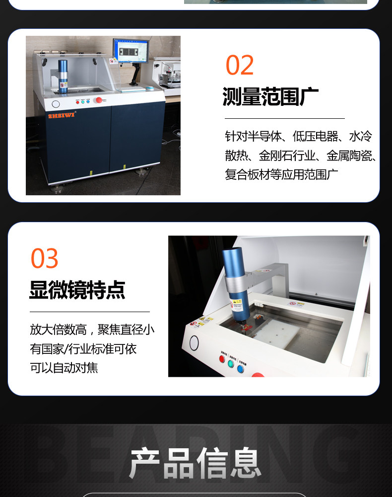 可满足低压电器焊接质量检测、金刚石缺陷和厚度测量、水冷板散热器检测、半导体封测等行业需求。