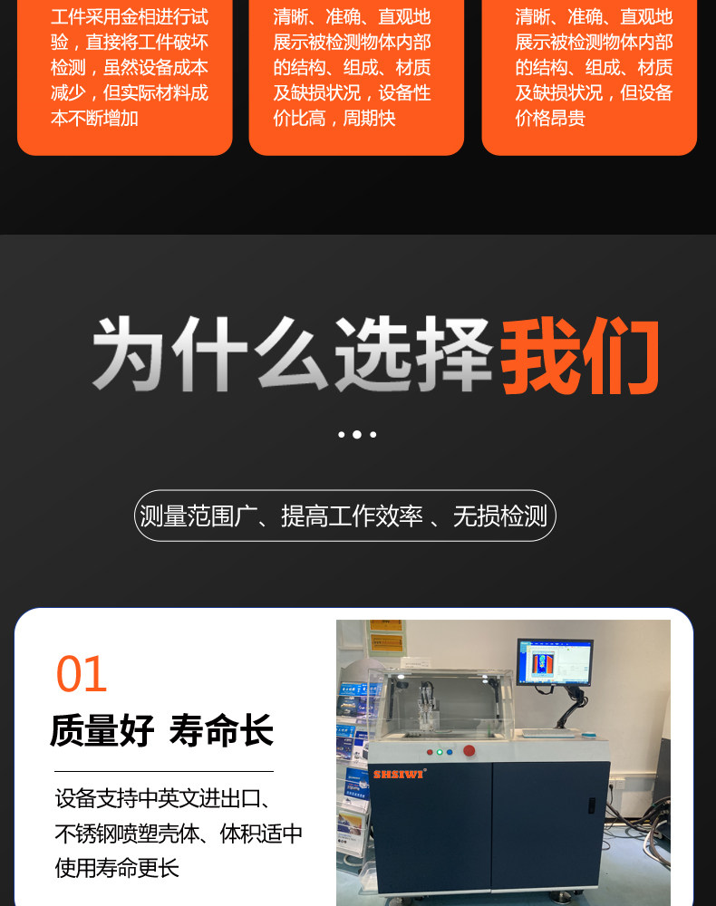 SHSIWI/上海思为仪器可为客户提供超声无损检测仪器定制、检测标准定制、检测方案及夹具定制服务。现已形成110金刚石一体机、100标准机型、200大构件机型、300、600高速机型、400桌面机及500、510、520小型机,产品已通过ISO9001认证;
