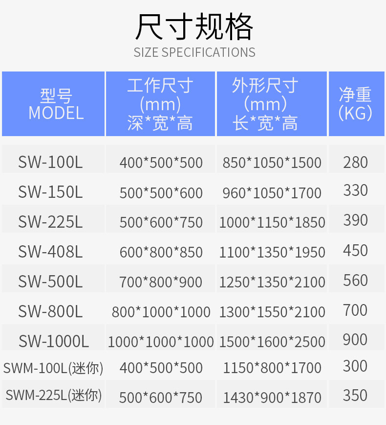 SHSIWISW-50(50L) SW-100(100L) SW-150(150L) SW-225(225L) SW-408(408L) SW-500(500L) SW-800(800) SW-1000(1000L) |