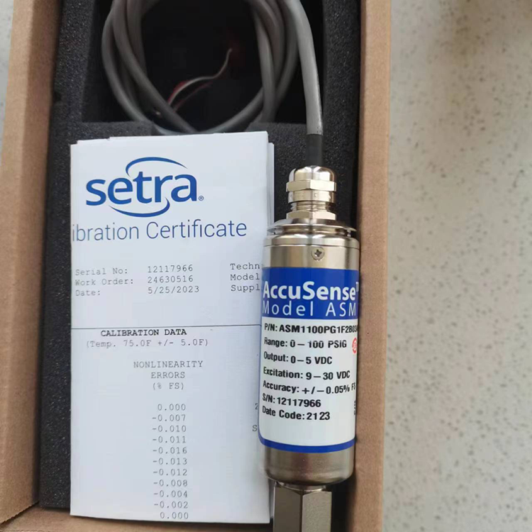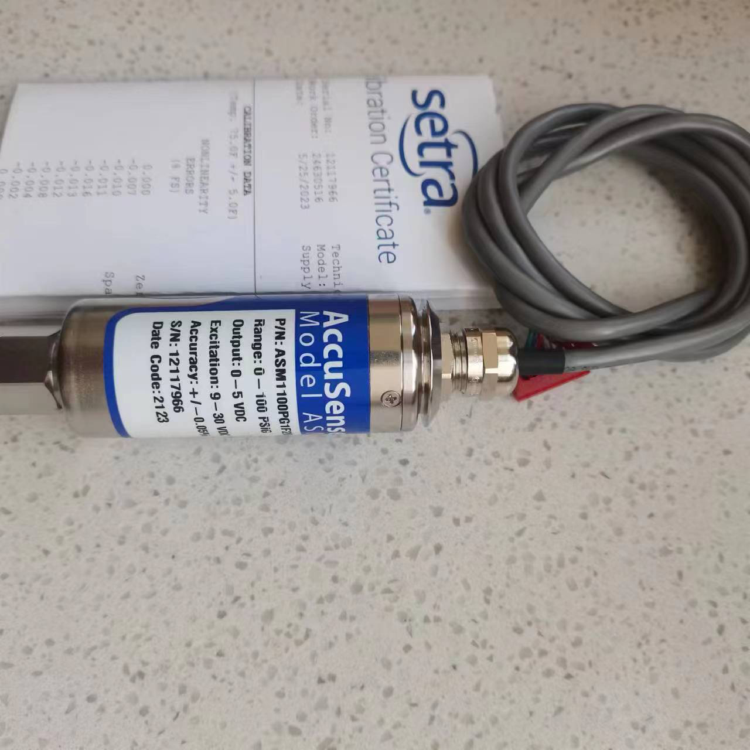 ,压力接口:1/8NPT内螺纹和宝塔形接头,输出信号4-20毫安,较高耐压选项,精度较高达<±0.07%精度。是目前setra西特生产的精度精度较高的微差压变送器的代表型号。