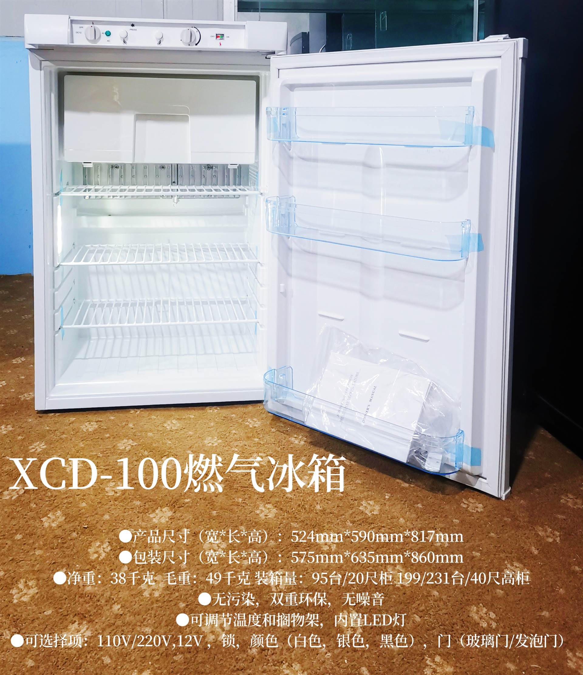 ●可选择项:110V/220V,12V ,锁,颜色(白色,银色,黑色),门(玻璃门/发泡门)