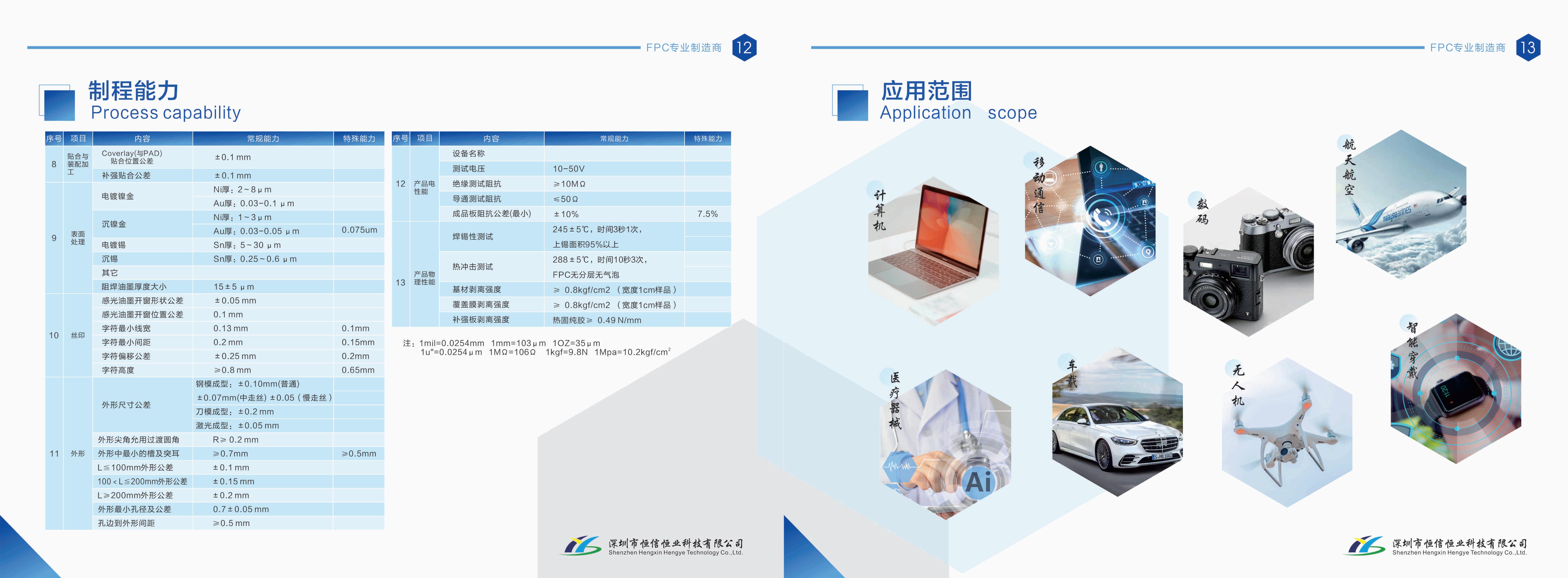 、电脑周边辅助系统、消费性民生电器及汽车等范围。 FPC柔性板(1)可以自由弯曲、卷绕、折叠,可依照空间布