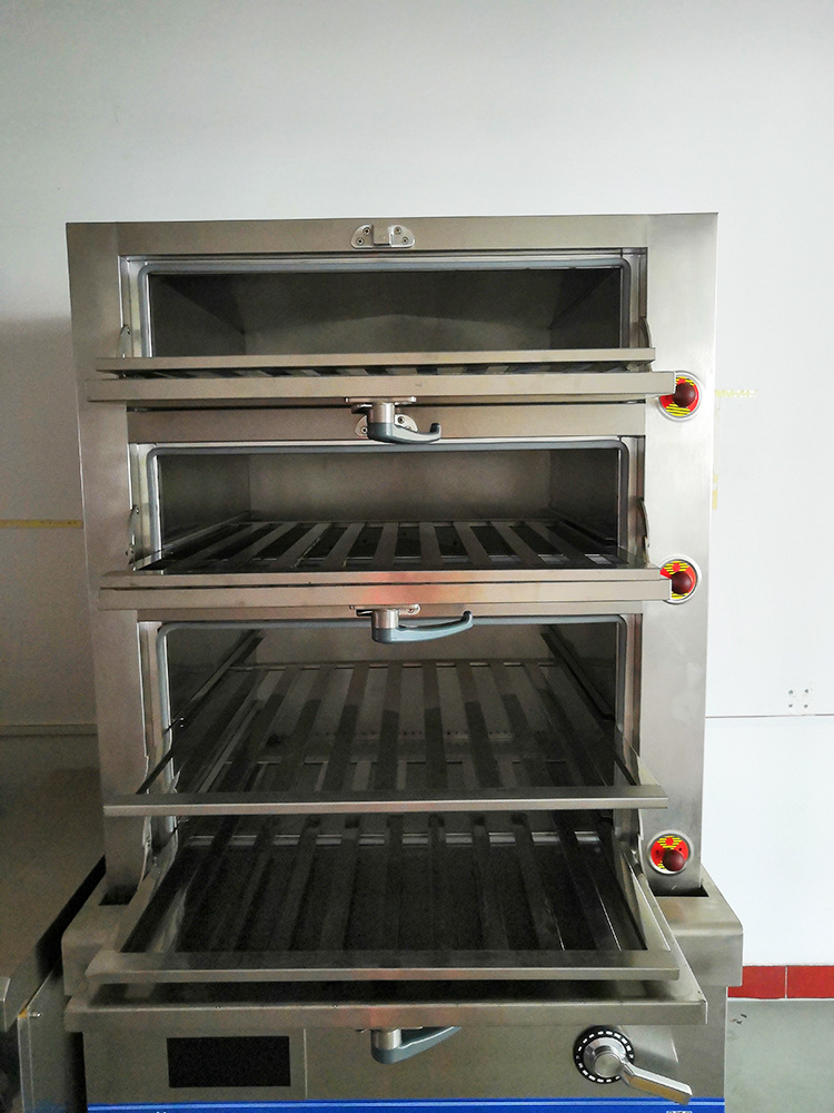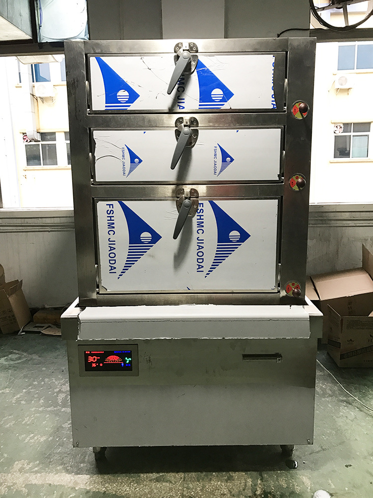 5:节能海鲜蒸柜采用加厚不锈钢材料精心加工制作而成,整机结实耐用,卫生安全,清洗方便,三层电热海鲜蒸柜大大的增加了机器的使用寿命。