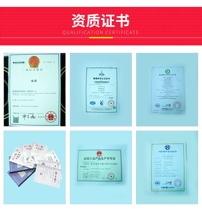 正鹏全面实施ISO9001:2000版质量保证体系、ISO14001环境保护体系及5S管理。获得国家权威机构颁发的“产品检验报告”、“中国厨房设备推荐产品”、“CTA品质验证”,被评为“AAA 级质量信用企业”、“中国品牌”、“广东省品牌”、“连续国家检测达标品牌”等。 正鹏全体员工感谢新老客户的惠顾和支持,欢迎来人来电洽谈业务。