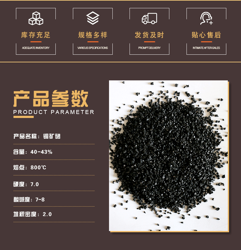 亮黑金刚砂 喷砂除锈铜矿砂研磨 耐磨地坪用骨料 新泰净水材料