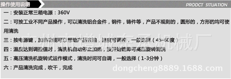 旋转式,高压式上下冲水方式,加温(可调),清洗后直接吹干,产品干爽,干净。有效去油污,有效保护产品。