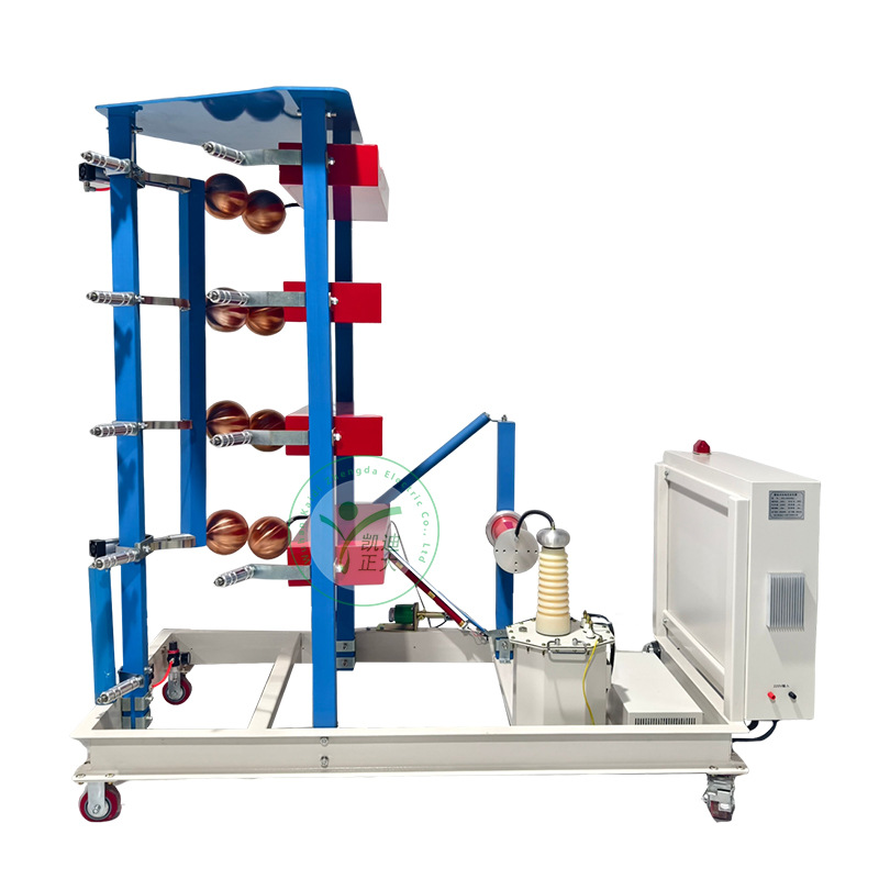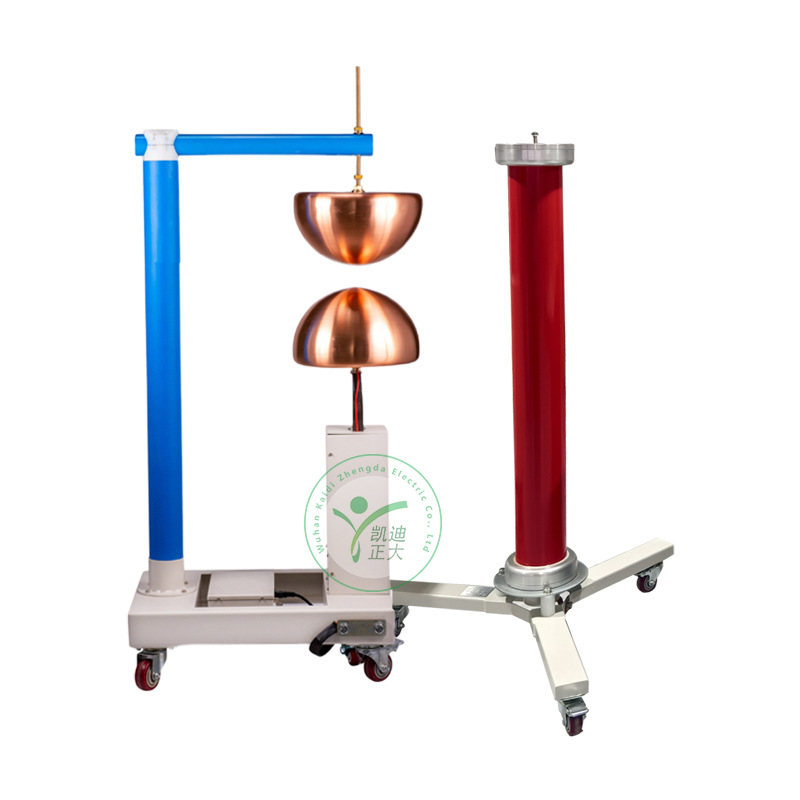 结构型式:单球截波球隙距离由控制台通过电动传动机构调节,与控制台进行电气连接能够实现远程控制球距,在外加触发电压下,截断装置无误动和拒动,不同步率控制<2%,成套装置手推可移动式,顶部装有均压罩。