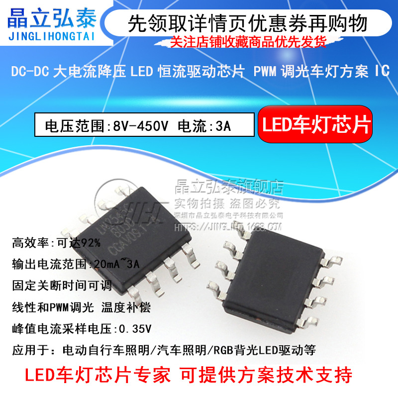 特点:宽输入电压范围:8V~450V高效率:可达92%输出电流范围:20mA~3A固定关断时间可调线性和PWM 调光温度补偿峰值电流采样电压:0.38V