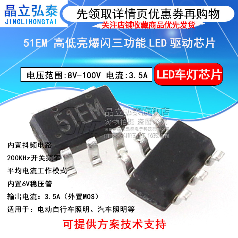 51EM_SOT23-6是一款外围电路简单,PWM 连续工作模式,适用于8V-100V全电压范围的非隔离式恒流 LED 驱动芯片。