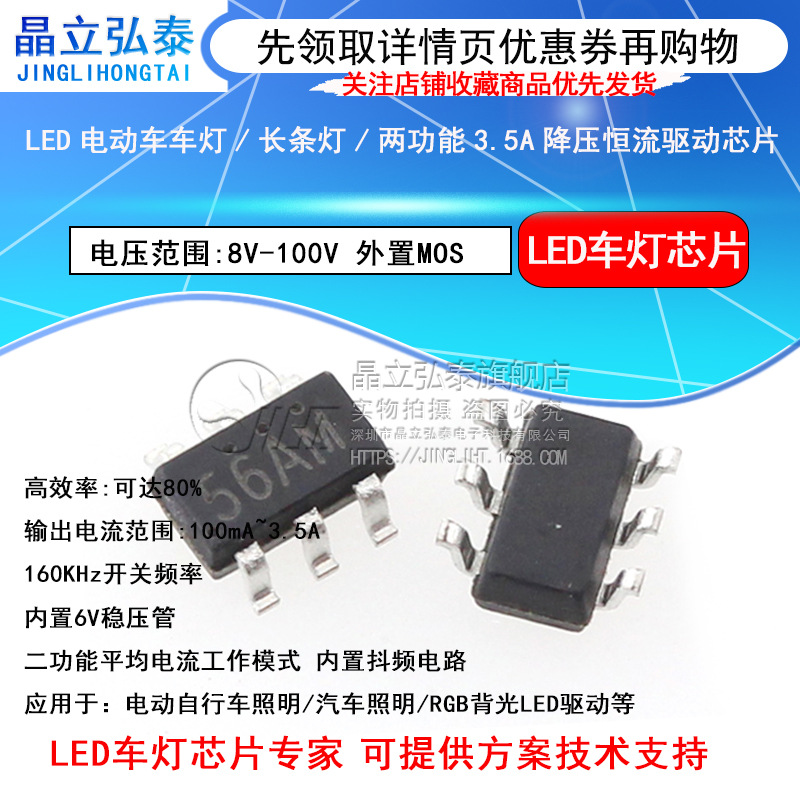 56AM是一款外围电路简单,采用自主知识产权的VFPWM连续工作模式,适用于8-100V 全电压范围的非隔离式恒流LED驱动芯片。