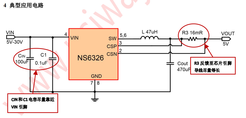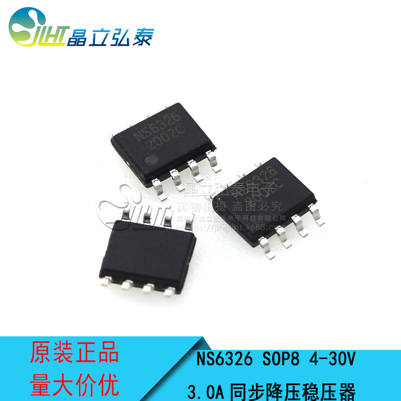 说明:NS6326是支持高电压输入的同步降压电源管理芯片,在4~30V的宽输入电压范围内可实现3A的连续电流输出。NS6326具有优秀的恒压/恒流(CC/CV)特性。NS6326采用电流模式的环路控制原理,实现了快速的动态响应。NS6326工作开关频率为130kHz,具有良好的EMI特性。另外,芯片包含多重保护功能:过温保护,输出短路保护和输入欠压/过压保护等。NS6326采用SOP8的标准封装。 特性:宽输入电压范围:4V至30V效率可高达92%以上超高恒流精度:±5%恒压精度:±5%无需外部补偿开关频率:130kHz输入欠压/过压、输出短路和过热保护SOP-8封装输出电流:3A 应用范围:车载充电器/适配器线性调节前置稳压器分布式供电系统电池充电器