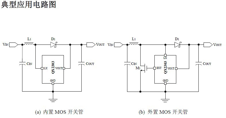 QX2303系列产品仅需要四个外围元器件,就可完成将低输入的电池电压变换升压到所需的工作电压,