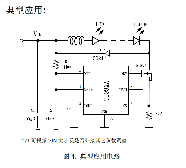YX6623通过调节外置电流检测电阻的阻值来设置流过