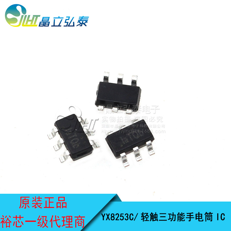 YX8253C 是一款采用轻触开关控制,可实现:“100%亮—25%亮—暴闪—灭”四种模式循环转换的 LED 驱动芯片。芯片内部集成具有防抖功能的按键输入信号检测电路,可实现对轻触开关的检测,通过轻触开关控制 LED 完成全亮、25%亮和暴闪三种功能的变化,并可通过长按开关 3s 以上实现 SOS 模式工作。无需通过 MCU 编程即可实现多功能 LED 驱动应用。YX8253C 在三节干电池或一节锂电池供电情况可直接驱动 1~2W LED。YX8253C 采用绿色环保的 SOT23-6 封装,以及最少一个外围电容器件,可有效减小 PCB 布板空间、降低系统成本和提升系统可靠性。YX8253C 可工作于-40℃~+85℃