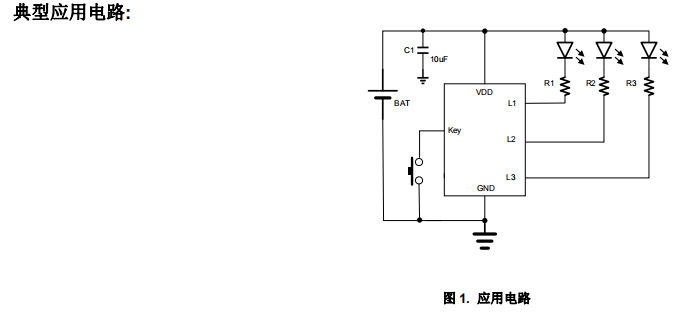 特性:上电OFF,轻触后L1L3亮L2L3亮L1L2L3同亮L1L2L3同闪 三灯全灭工作电压:2.5V~5V工作效率高达93%120m?低导通电阻L1,L2都有1.4A的驱动电流能力L3具有指示灯的效果SOT23-6绿色封装轻触按键实现功能选择
